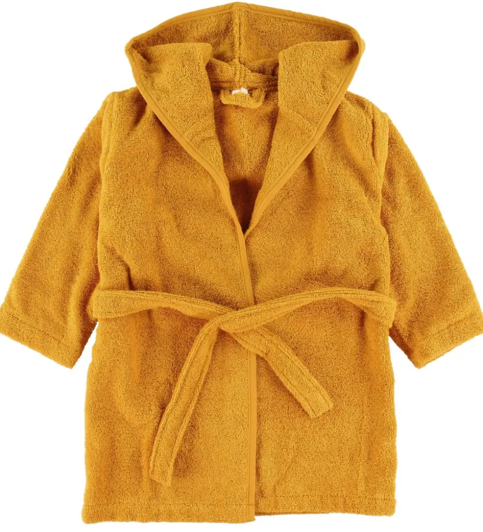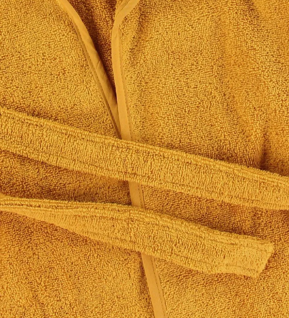Dejlig Nørgaard Madsens badekåbe i karrygul.