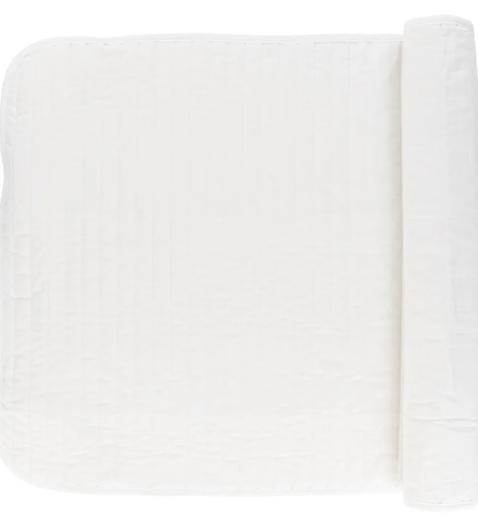 Blød Nørgaard Madsens rullemadras i ensfarvet hvid med vandrete syninger.