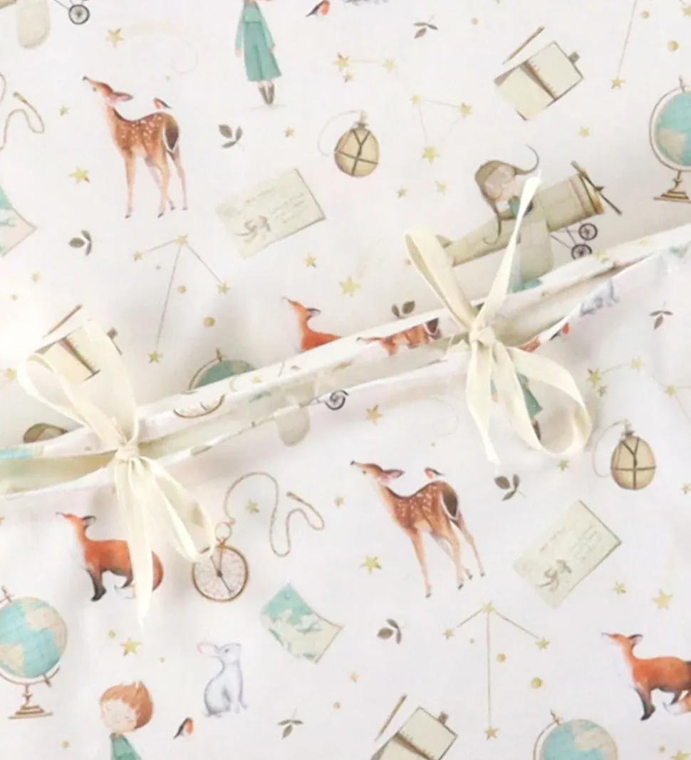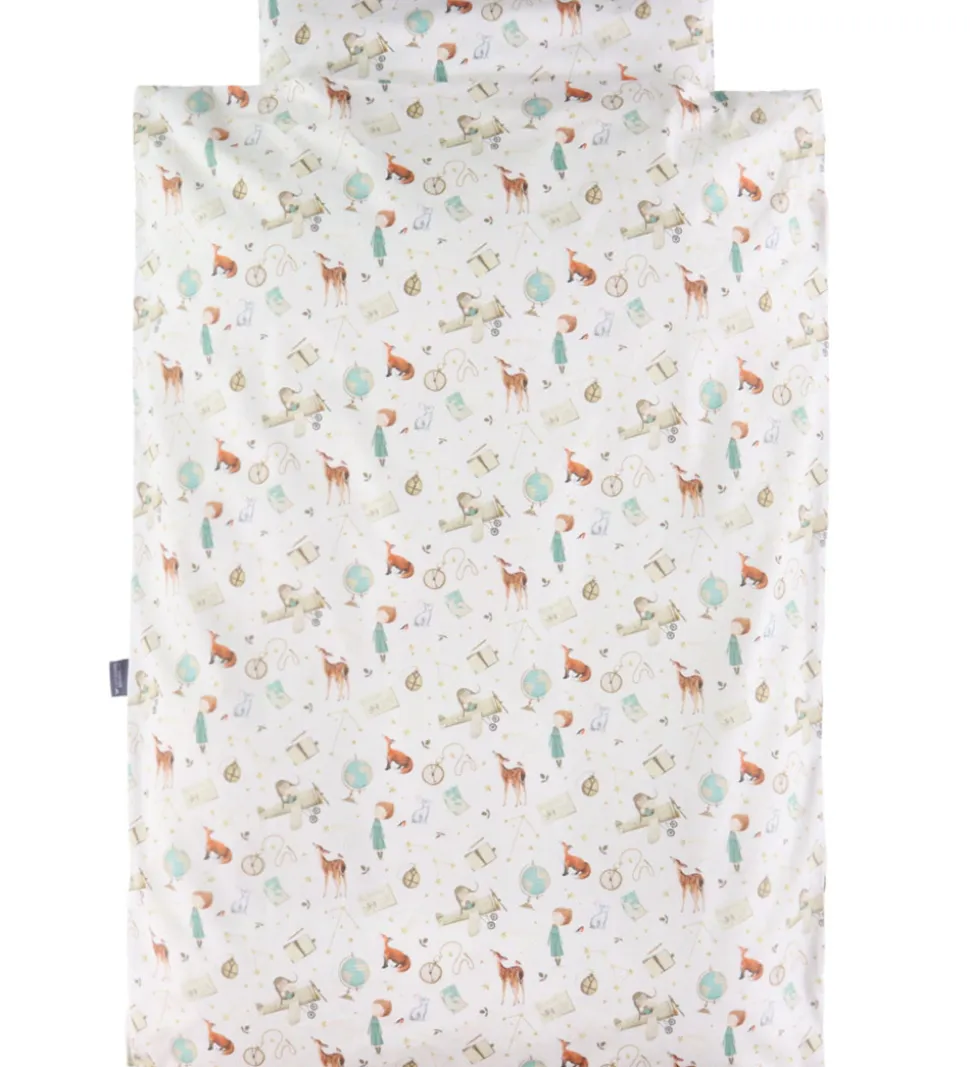 Flot Nørgaard Madsens sengetøj i råhvid med et farverigt allovervidenskabsprint.
