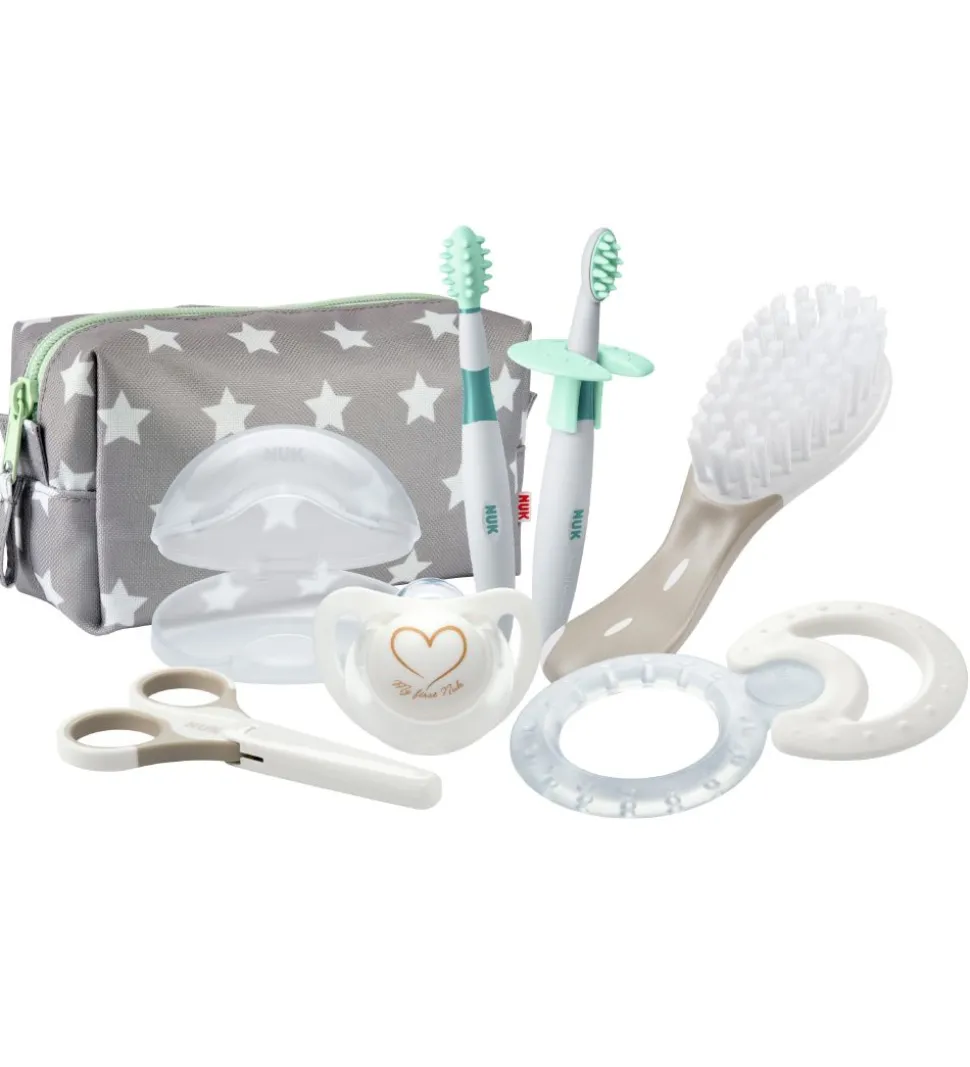 Nuk plejesættet er perfekt til at have med i pusletasken eller til at have liggende ved puslebordet. Så er de mest nødvendige ting til pusletiden lige ved hånden.