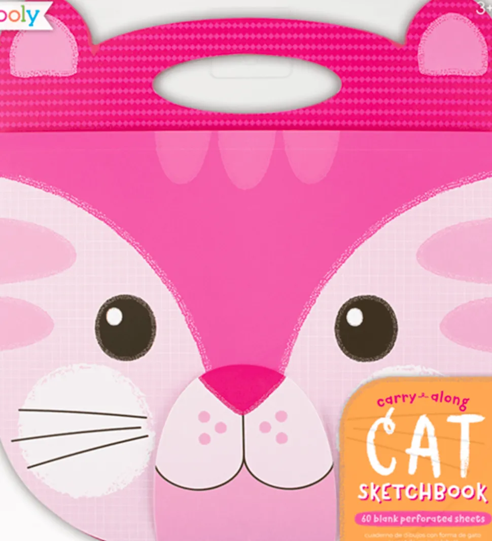 Hyggelig Ooly skitsebog i en pink farve med et sjovt kattedesign på forsiden. Denne skitsebog indeholder 60 perforerede sider, perfekt til kreativ udfoldelse og tegning. Den er lavet med et bærehåndtag øverst, så den er lgie til at have med på farten.