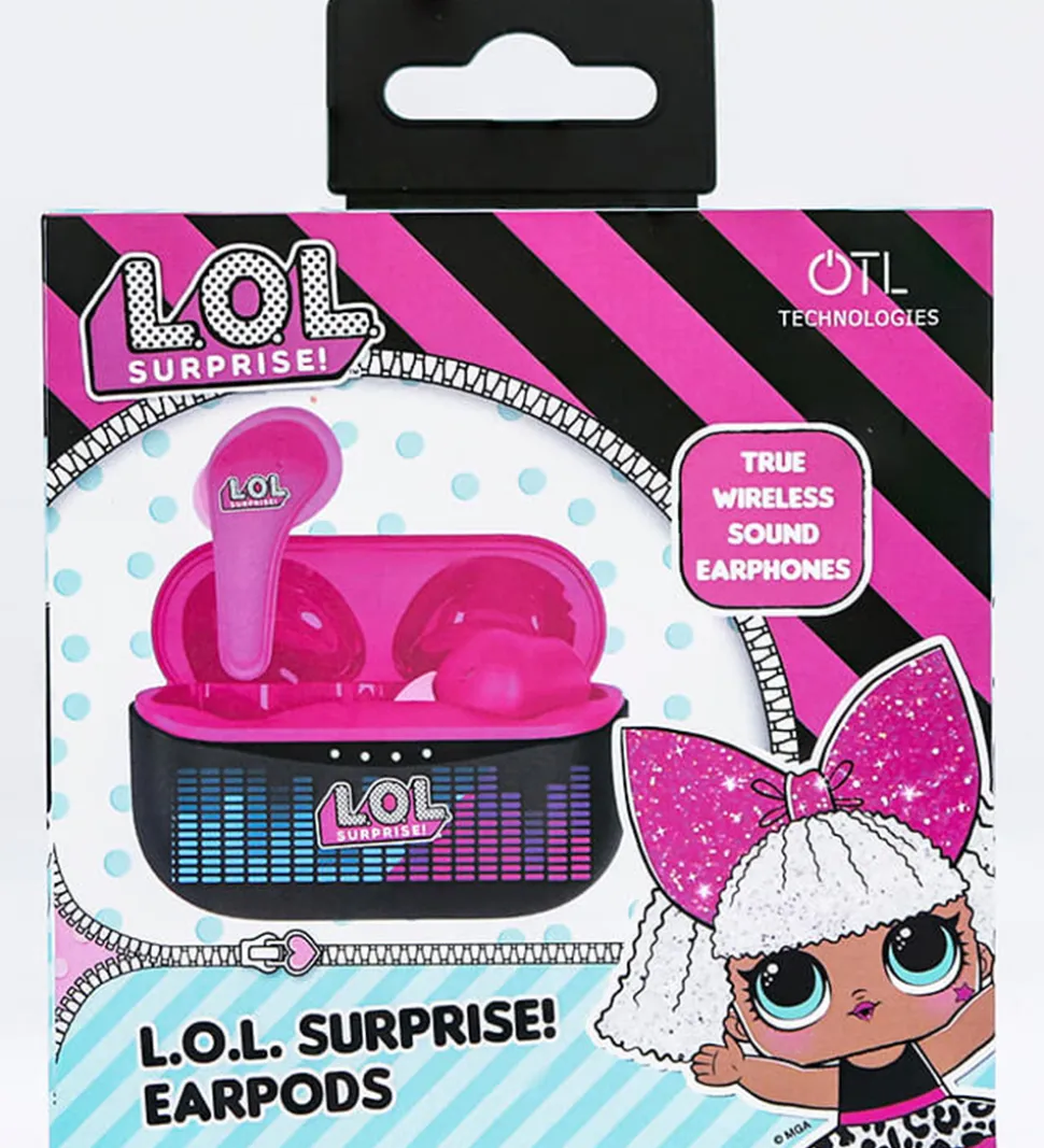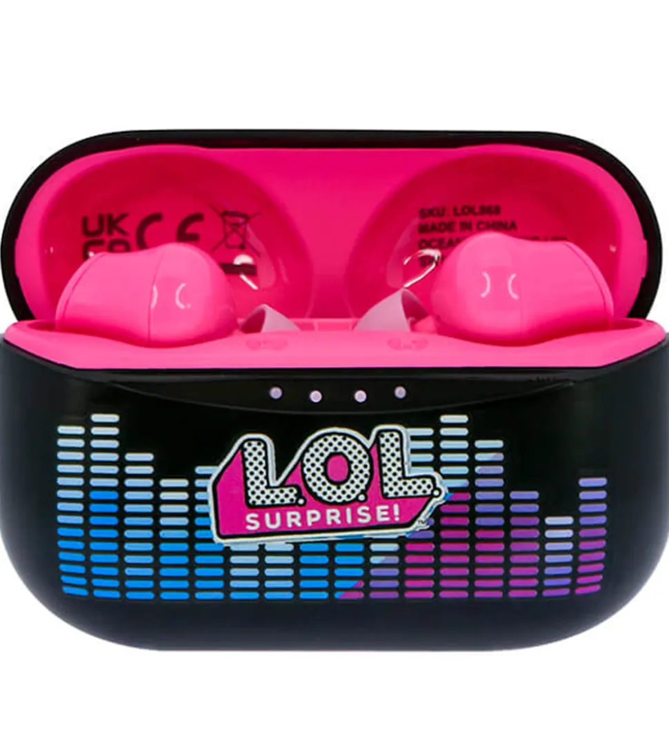 Seje, trådløse OTL høretelefoner i et sort og pink LOL Surprise!-tema.