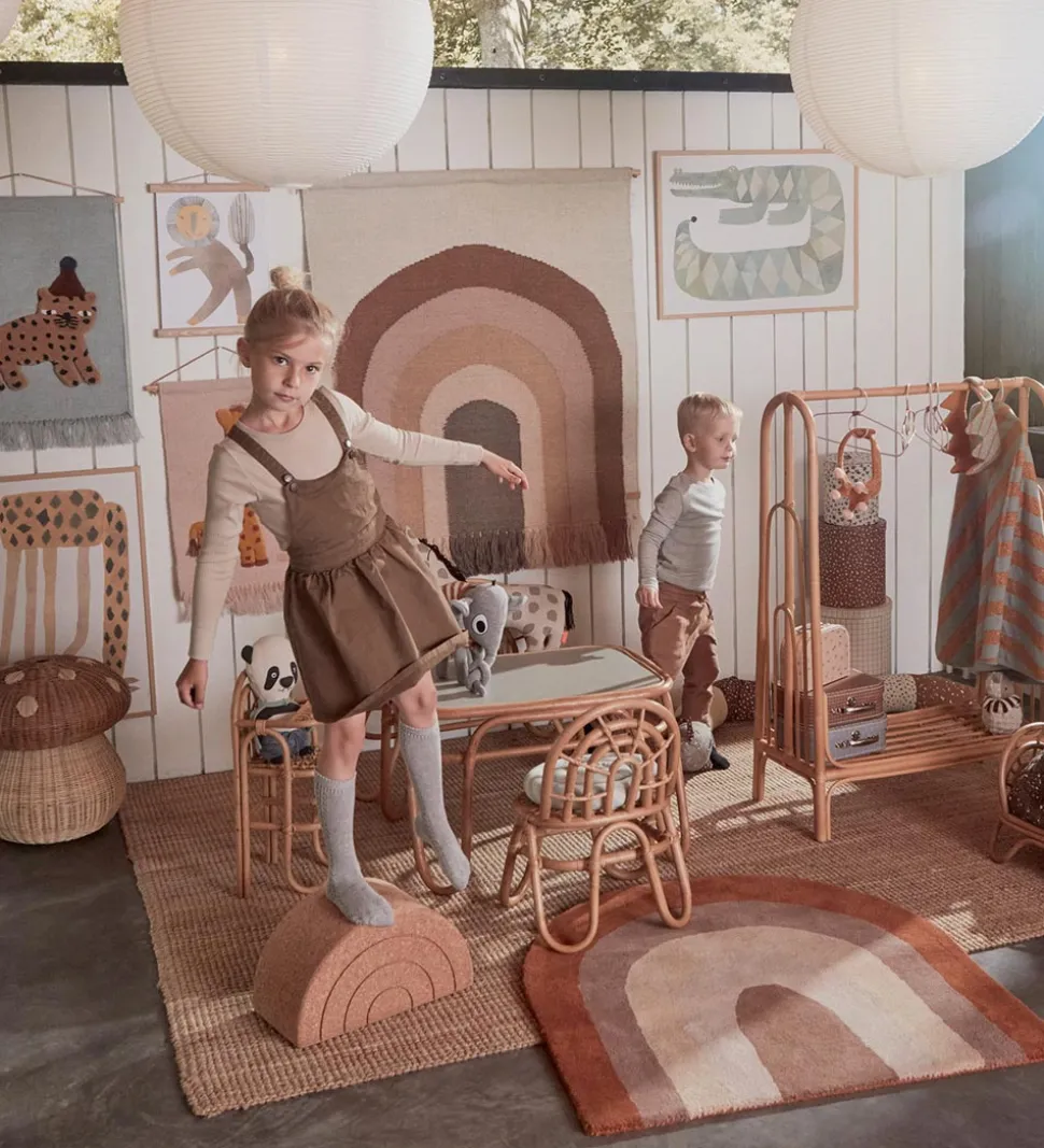 OYOY gulvtæppet er i en blød blanding af uld og bomuld. Det smarte design passer perfekt ind på børneværelset.