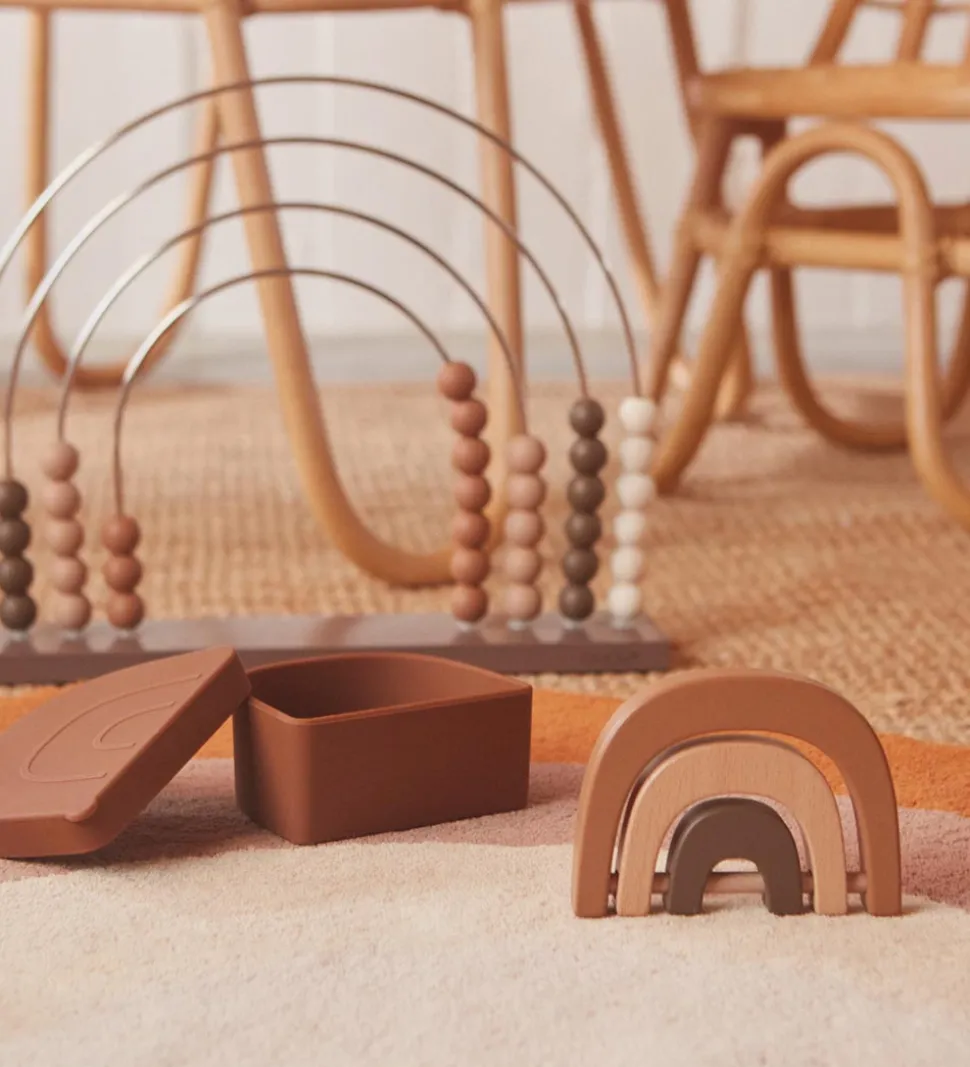 Smart OYOY gulvtæppe med form som en regnbue, i flotte farver.