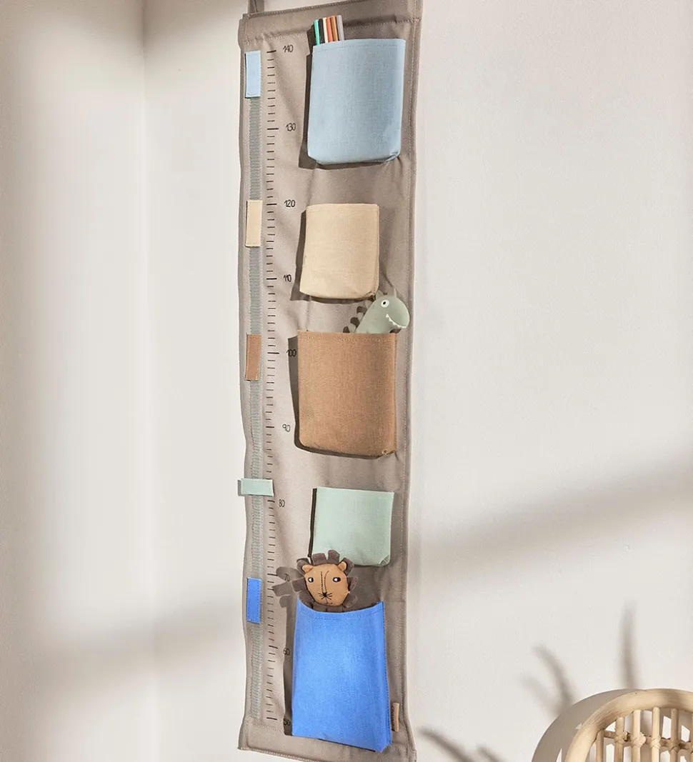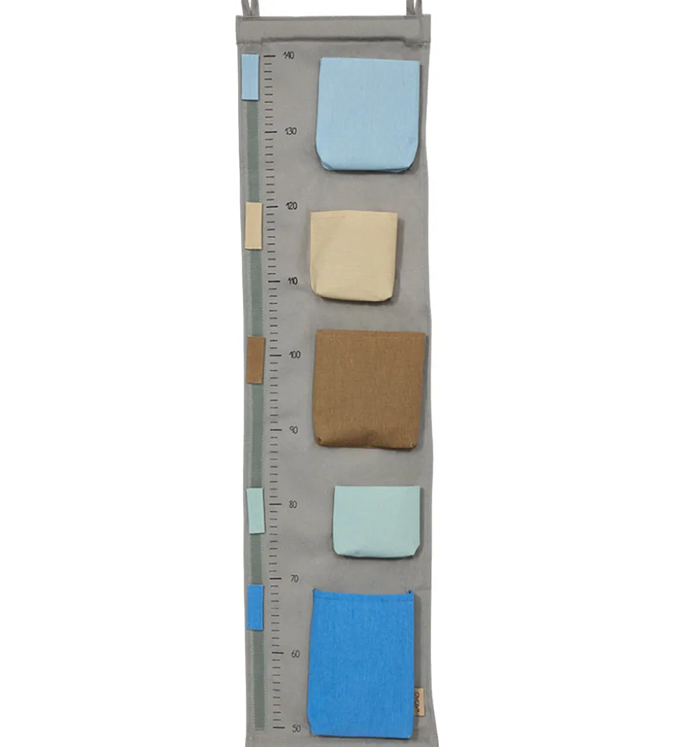Fin OYOY højdemåler i gråbeige med lommer i flotte farver.