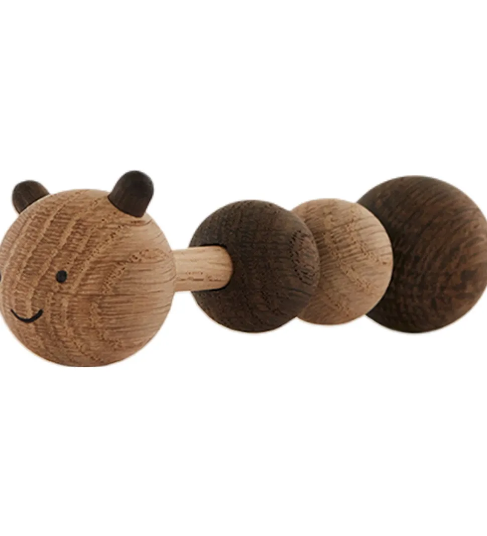 Charmerende OYOY rangle formet som en larve i to forskellige farver træ.