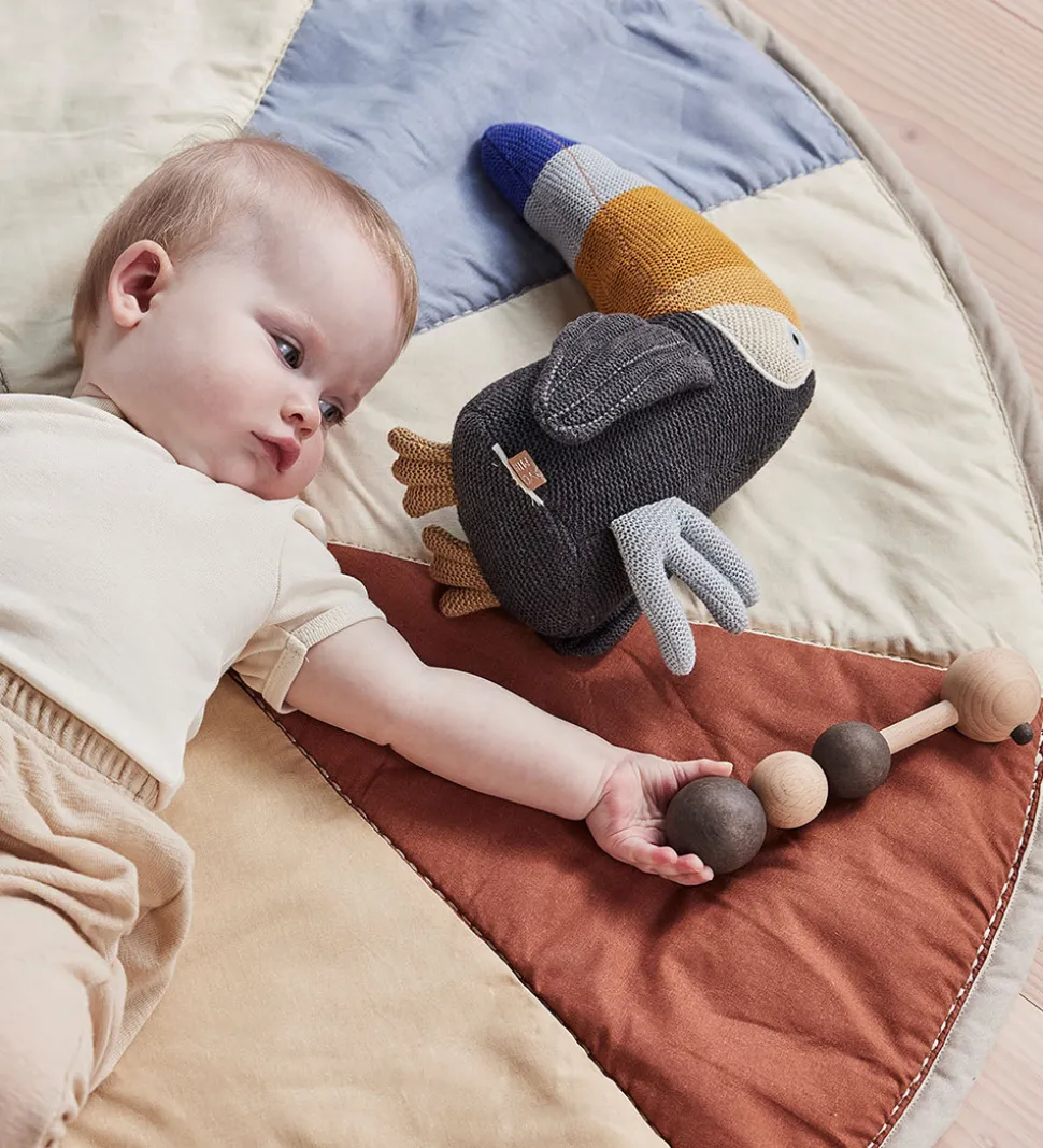 OYOY ranglen består af en pin med en kugle i hver ende, og i mellem dem sidder der yderligere to kugler, som kan rutsche frem og tilbage og lave sjove lyde. Dette design indbyder til leg, og den glatte overflade gør den behagelig at holde i små hænder. Ranglen er lavet af birketræ.