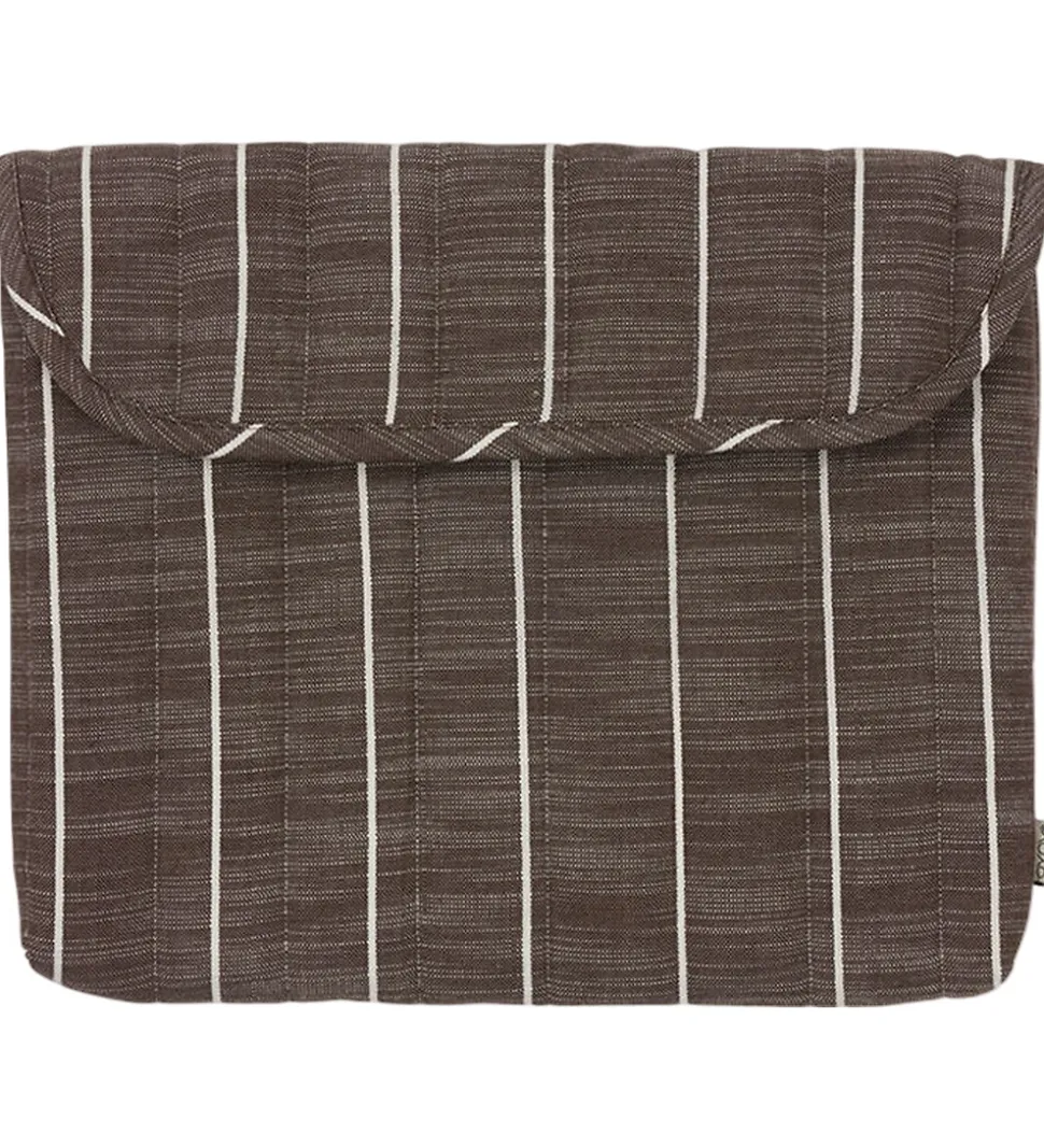 Lækkert OYOY sleeve i brun med cremefarvede striber. OYOY sleevet er lavet af blødt, vatteret tekstil, som beskytter computeren godt. Sleevet åbnes med en klap med velcro, og det passer til en bærbar computer på op til 16″.