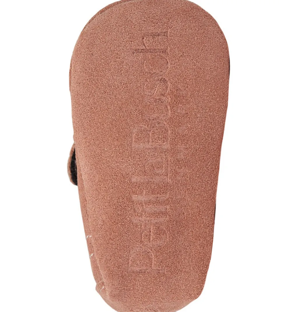 Petit La Busch skindfutterne er lavet i blødt læder, som smyger sig om de små fødder, og materialet følger føddernes bevægelser. Skindfutterne kan åbnes godt op, så det er let at få babyfødder ned i dem, og de lukkes over vristen med en bred velcrorem, som holder hjemmeskoene godt på plads. Skindfutterne giver bevægelsesfrihed til både fødderne og tæerne, og der er ingen generende syninger.