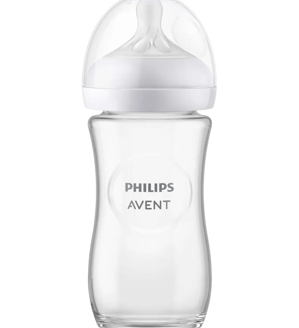 Philips Avent sutteflasken kan indeholde 240 ml og har en blød, brystformet sut i BPA-frit silikone som kun frigiver mælk når babyen drikker aktivt, samt et anti-kolik luftsystem. Sutteflasken er fremstillet af borosilikatglas, og kan modstå varme og termiske chok.