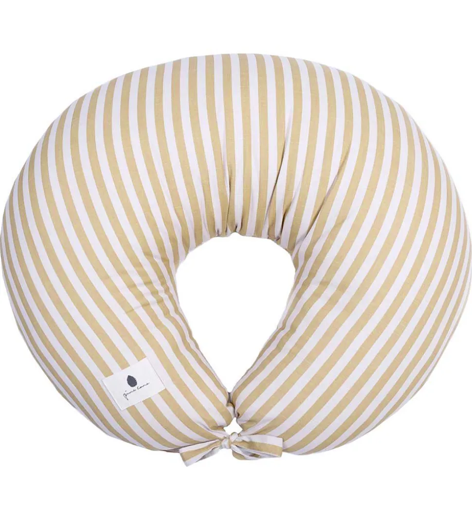 Praktisk Pine Cone ammepude med striber i beige og gul.