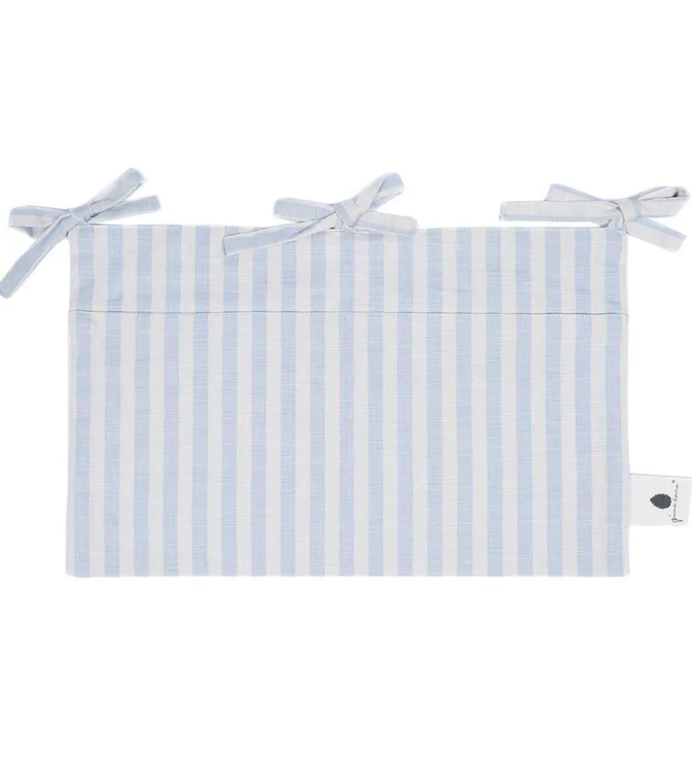 Smart Pine Cone sengelomme med striber i beige og lyseblå.