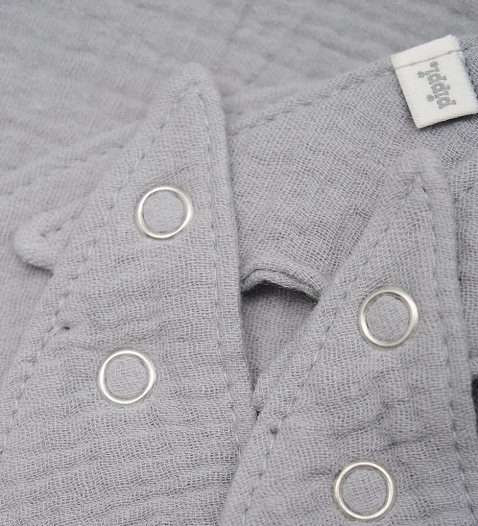 Fine Pippi Baby savlesmække solgt som en 2-pak i grå og med en musselinstruktur.