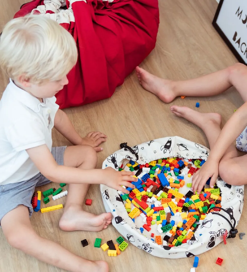 Smart Play&Go opbevaringspose i cremefarvet med galakse tema.