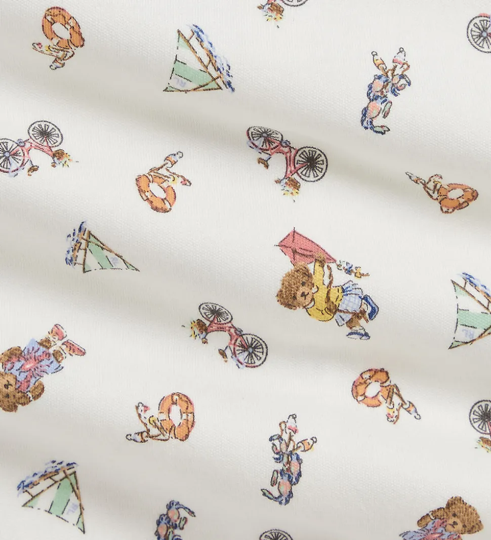 Lækker Polo Ralph Lauren sommerdragt i hvid med et farverigt alloverprint med forskellige sommermotiver.