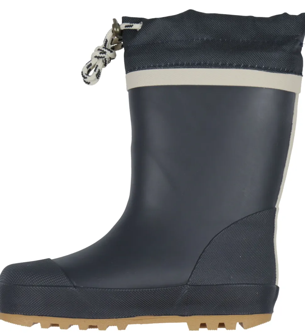 Lækre Pom Pom termostøvler i navy naturgummi med en hvid stribe i toppen.