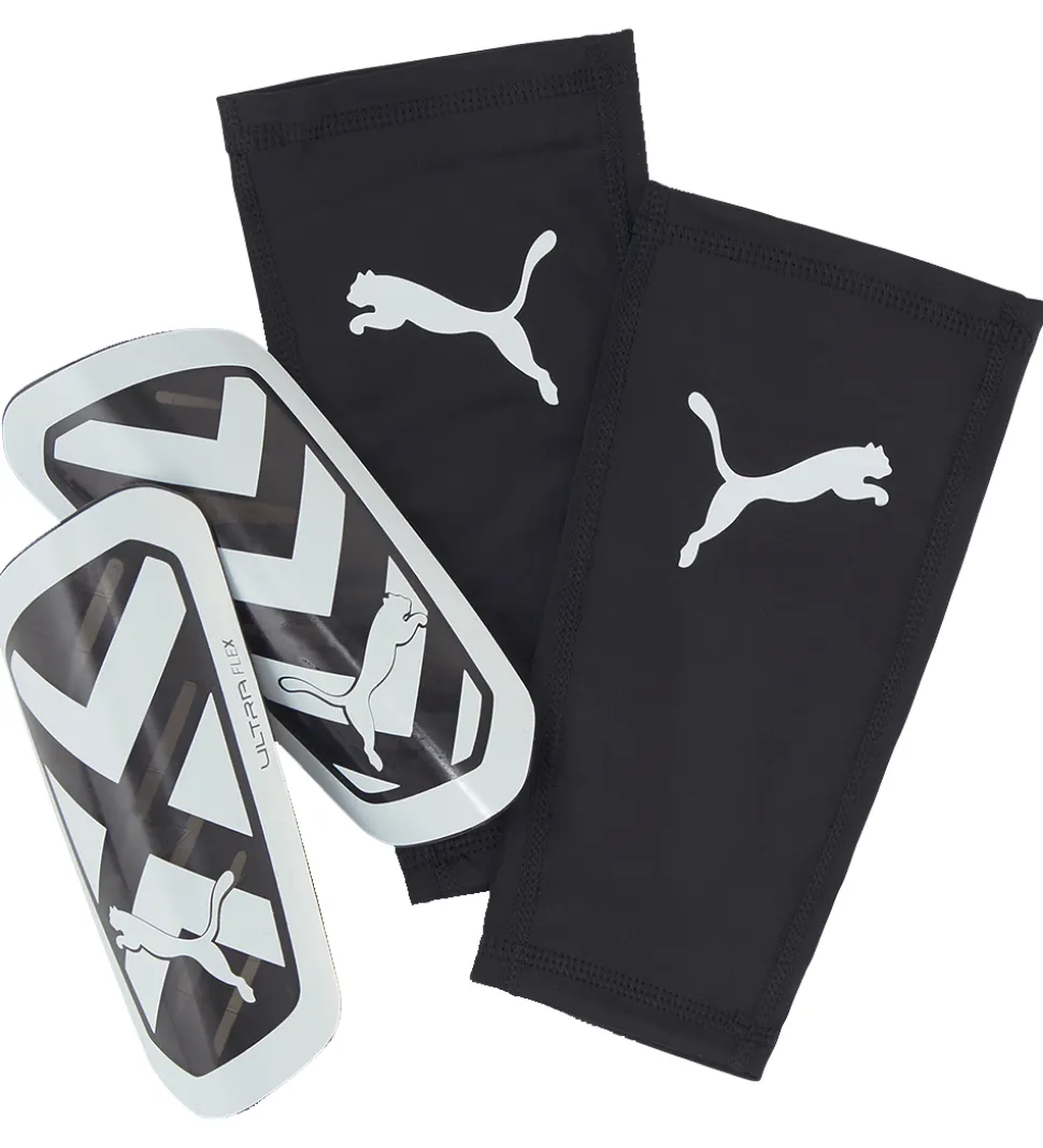 Puma benskinnerne har et asymmetrisk skjold, som beskytter skinnebenene mod stød. Benskinnerne er letvægtige for god komfort, og de medfølgende sleeves hjælper med at holde benskinnerne på plads.