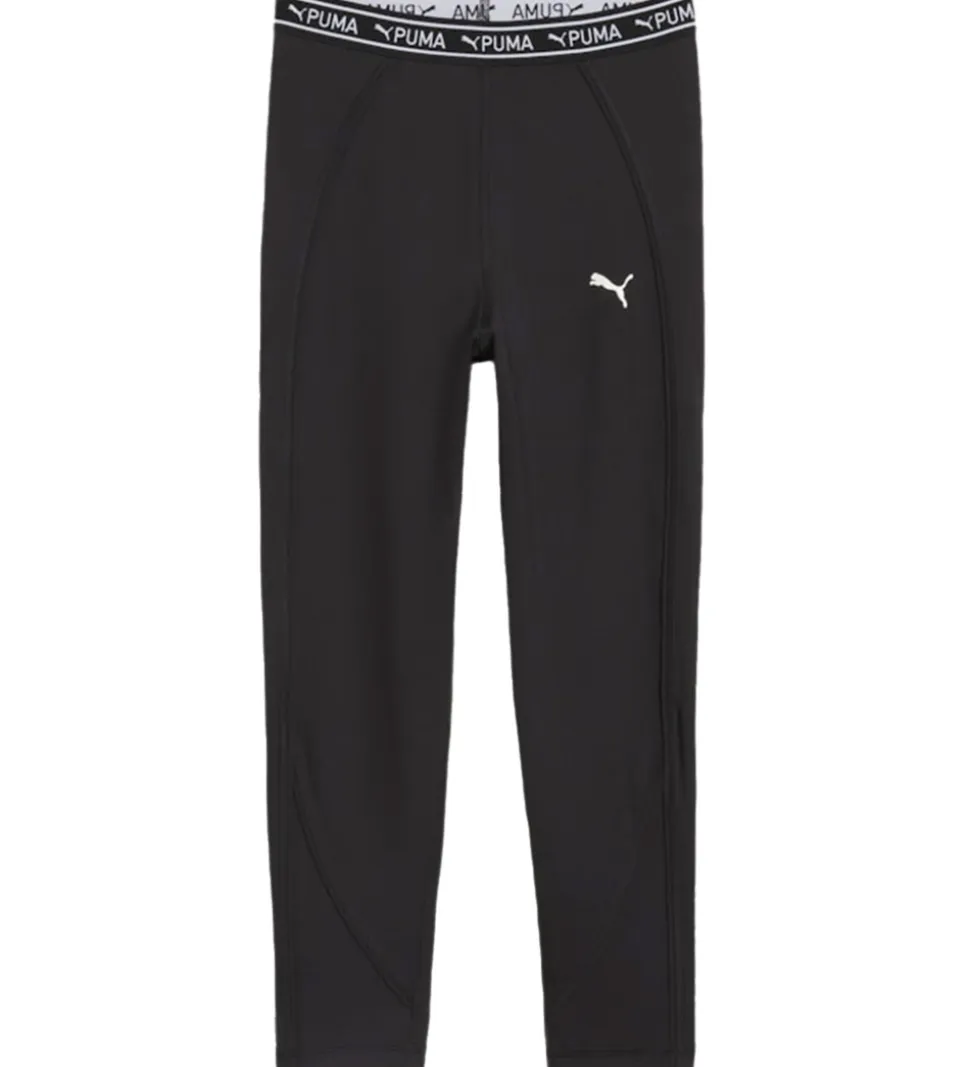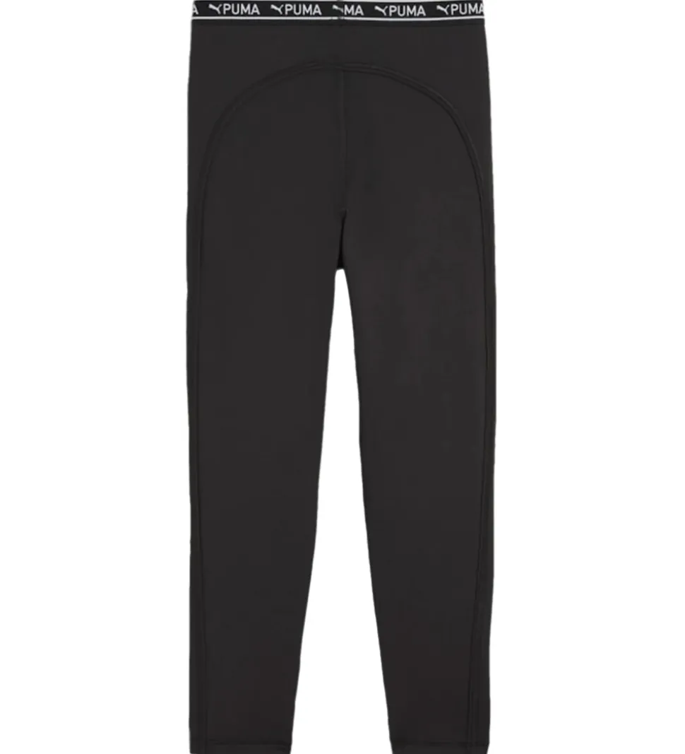 Lækre leggings fra Puma i sort med et hvidt logoprint på venstre lår, samt en elastikkant i taljen med Puma logoet i hvid.
