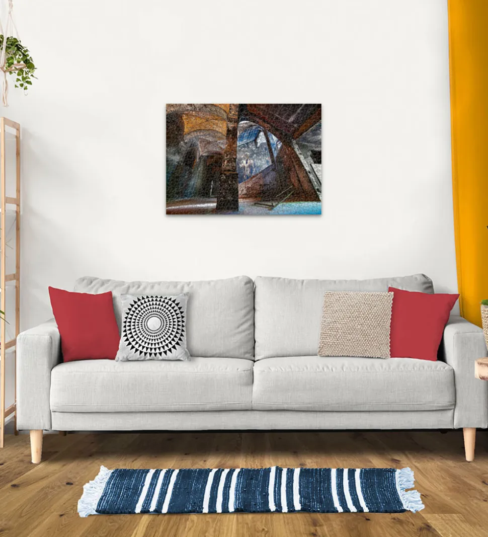 Fascinerende Ravensburger puslespil med titlen “Lost Places” som viser et dystert motiv af en forladt bygning i dybe farvetoner.