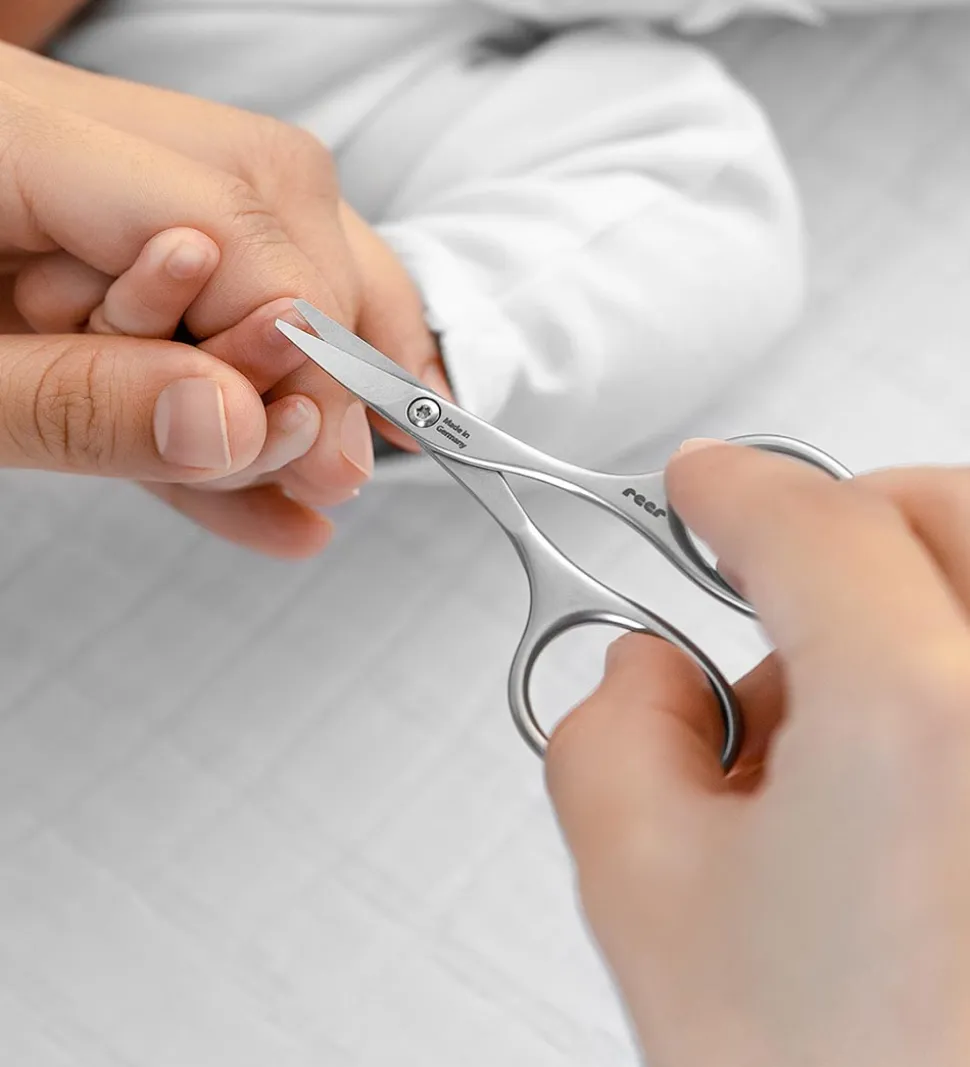 Reer neglesaksen er perfekt til at klippe babyers negle, da den har korte blade for mere præcision og mindre chance for skader. Neglesaksen mål 8,5 cm i længden.