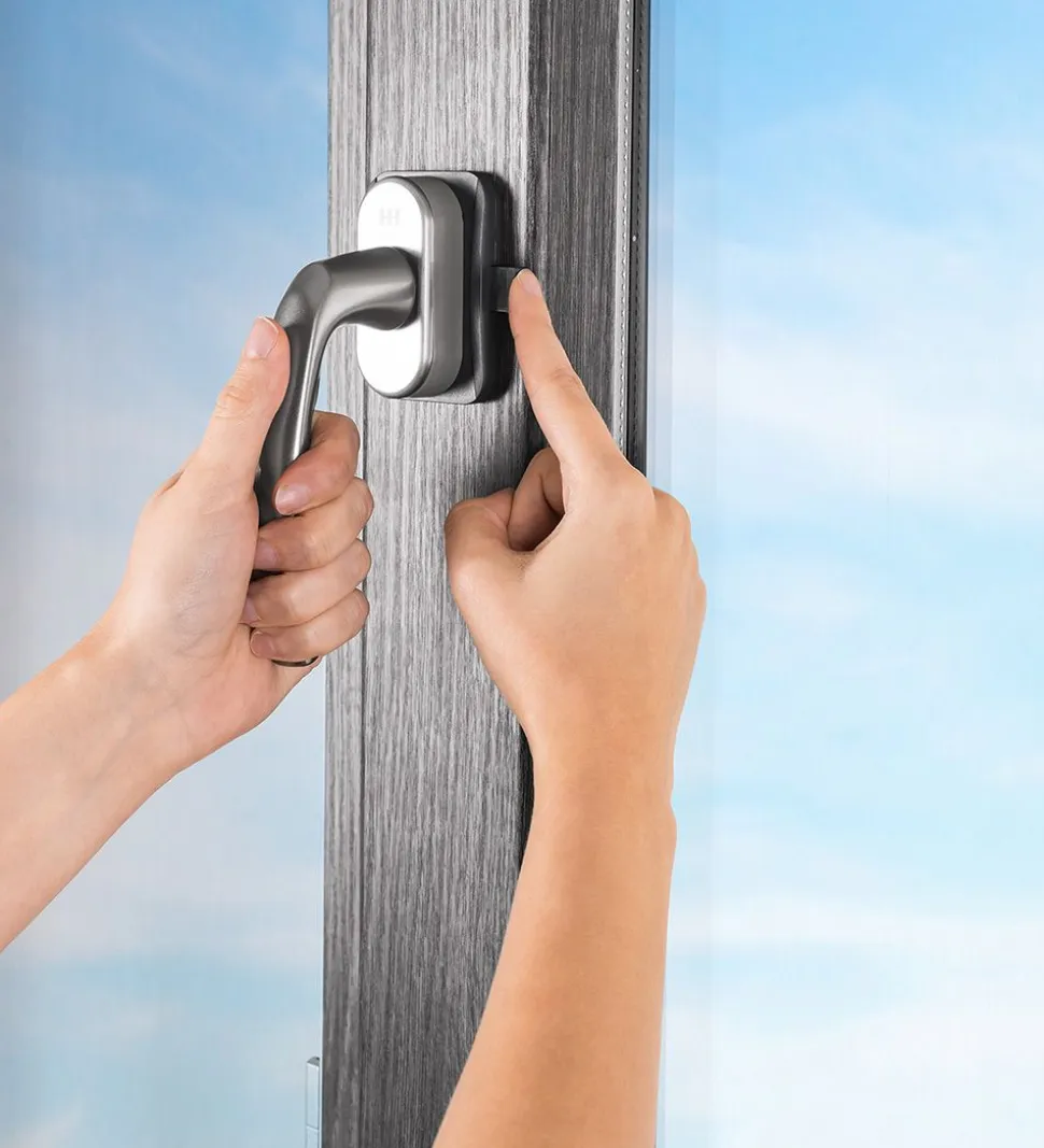 Smart sikkerhedslås til vindue eller altandør i grå.