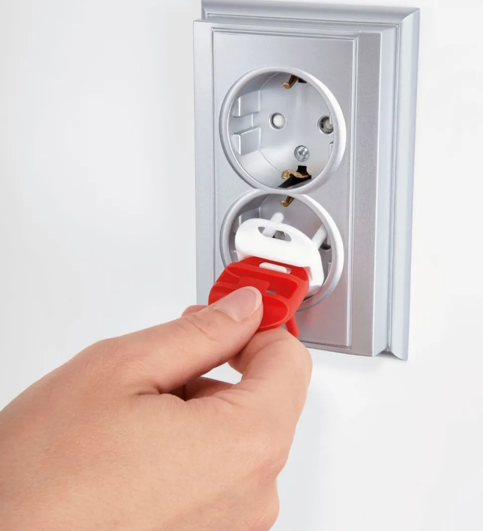 Reer stikkontakt-sikringerne sættes nemt ind i stikkantakten og sikre på den måde at barnet ikke kan komme til stik-hullerne og derved får stød.