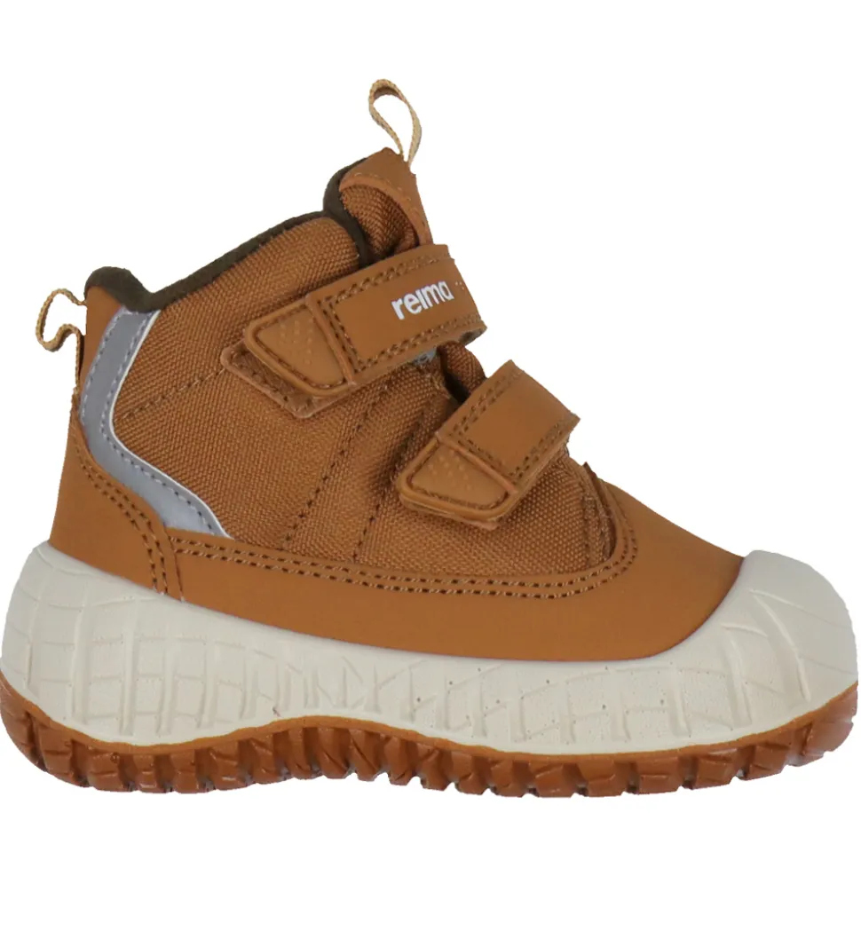 Flotte Reima støvler i brun tekstil og imiteret skind med smarte reflekser ved hælen.