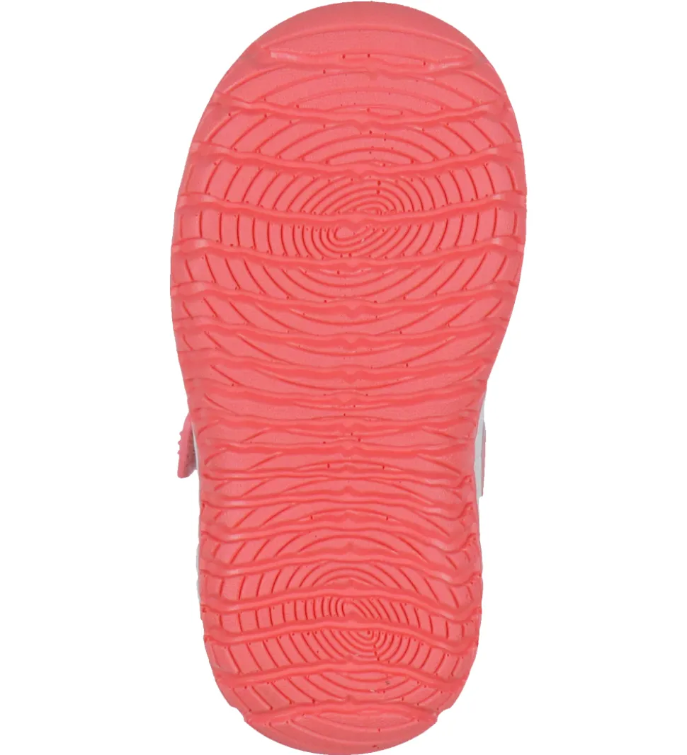 Støvlerne har en hvid og pink ydersål af gummi, som går lidt op over tæerne. Ydersålen har et praktisk mønster under bunden, som sikrer et godt fodfæste.