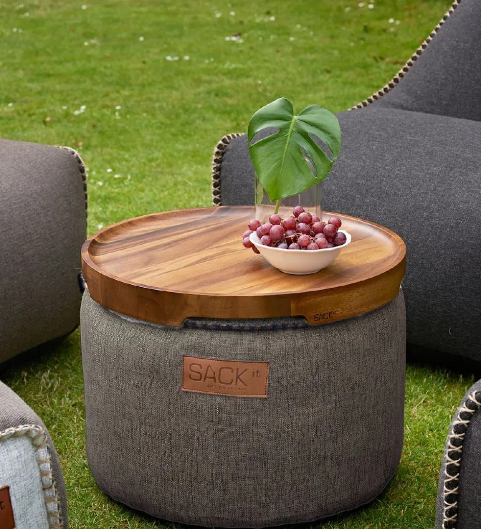Pufffen kan først og fremmest bruges som fodskammel til en Cobana sækkestol eller til en sofa, men kombineres den med en SACKit serveringsbakke, fungerer puffen også som et lille ekstra bord.