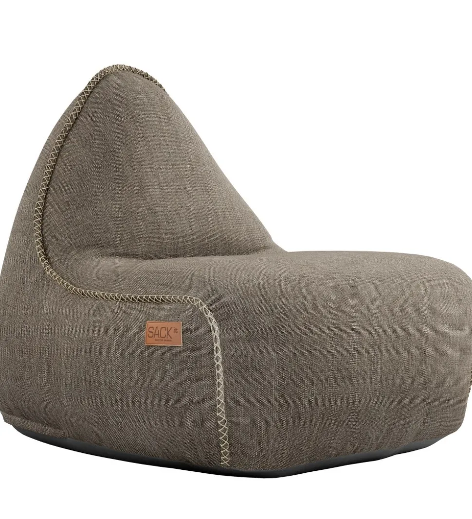 Fed SACKit sækkestol i en meleret, brunlig nuance med syningsdetaljer i en kraftig hørkvalitet og et dekorativt håndtag på bagsiden.
