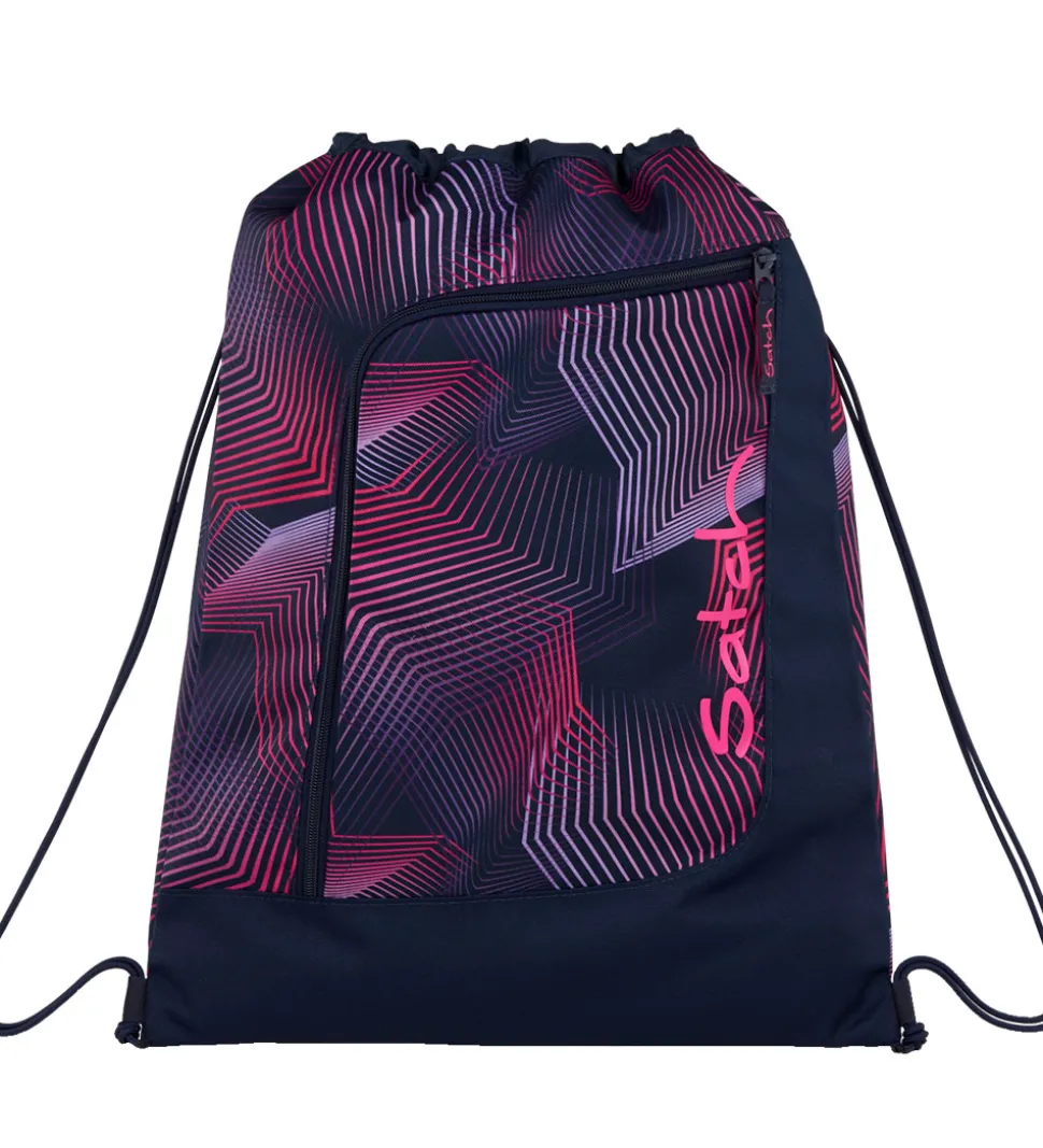 Satch gymnastikposen lukkes til i toppen ved at stramme snørerne ind. Fortil er der et mindre rum, som lukkes med en lynlås. Gymnastiposen kan klikkes fast uden på skoletaskerne fra Satch med remmen med klikspændet i toppen af tasken.