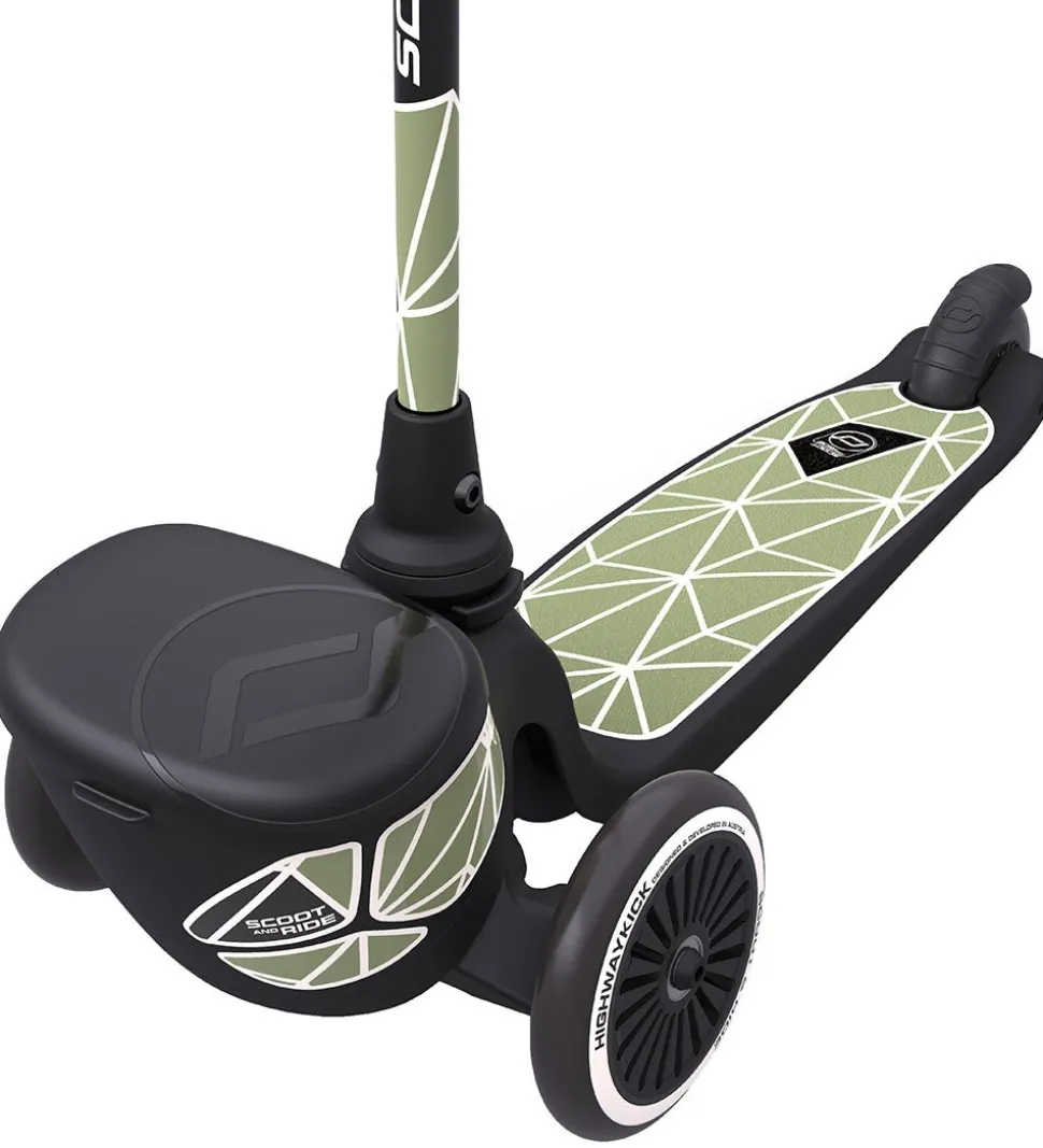 Scoot and Ride Highway Kick 2 er et smart løbehjul med to store hjul foran og et lille hjul bagpå med gode bremser. Løbehjulet har en bred plade til at stå på, med et skridsikkert materiale og er dermed meget stabilt. Fortil er der en praktisk opbevaringsboks, til f.eks. yndlingsbamsen eller lignende. Hele styret kan tags af, så det er let at opbevare. Hjulene er i hård gummi.