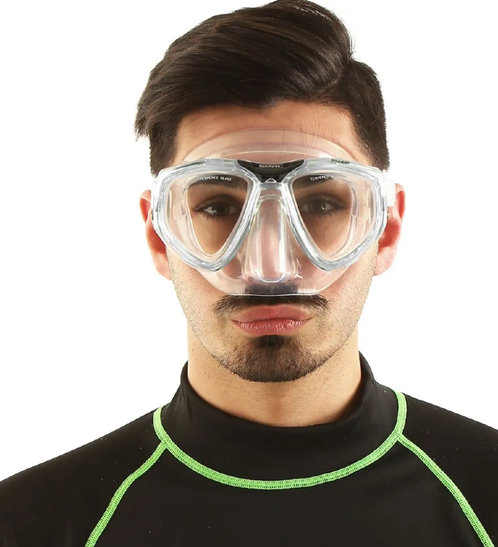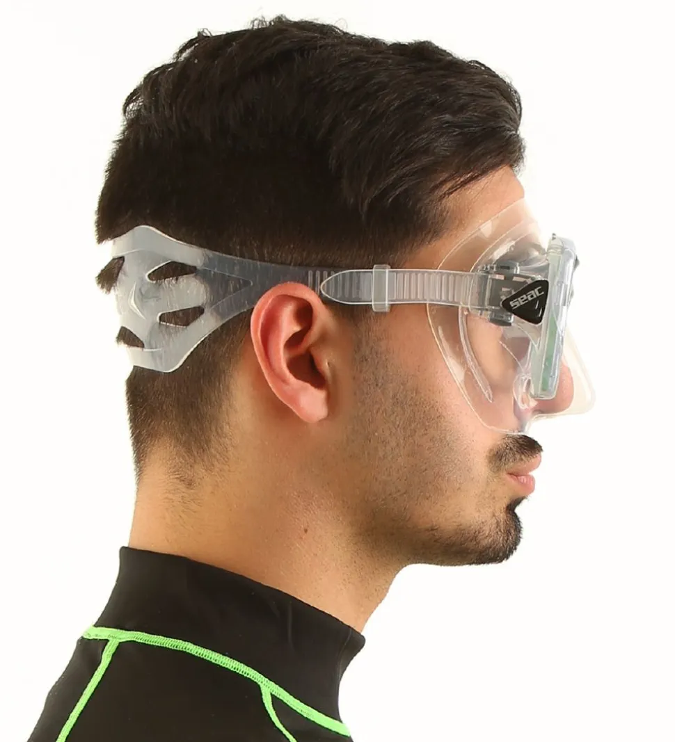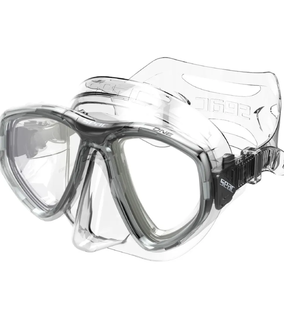 Fin Seac dykkermaske i transparent med en sort kant langs glasset.
