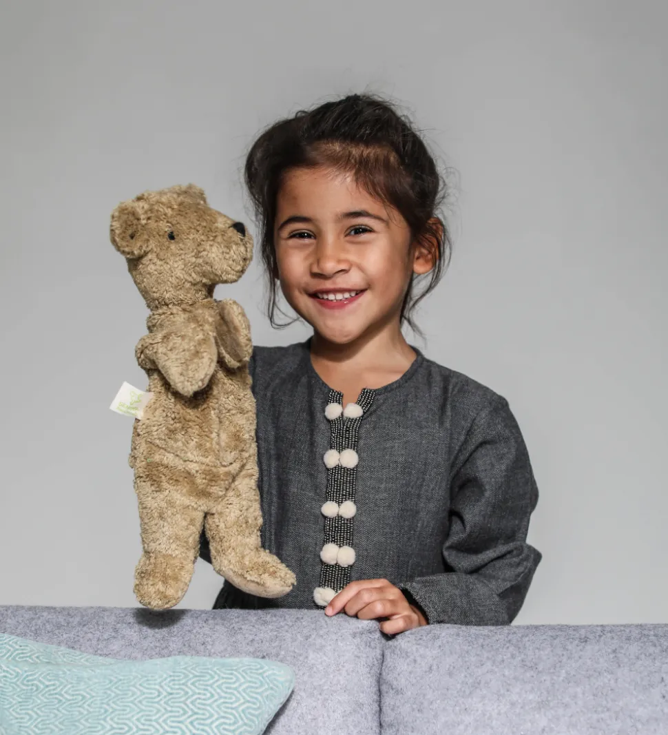 Nuttet Senger Naturwelt hånddukke udformet som et plysset bjørn.