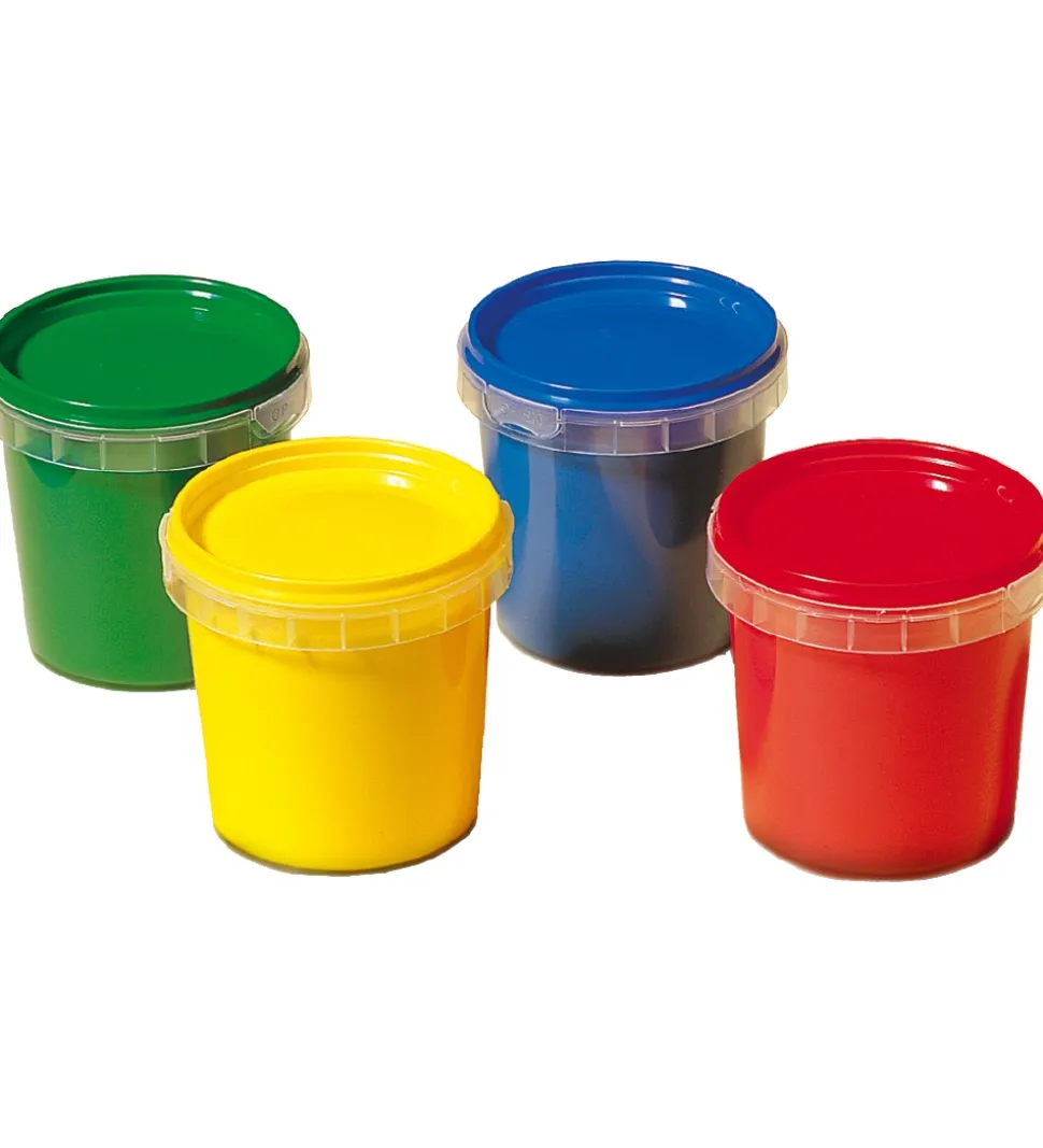Denne æske indeholder 4 beholdere med fine farver, der også kan blandes til nye farver. Hver beholder indeholder 145 ml fingermaling.