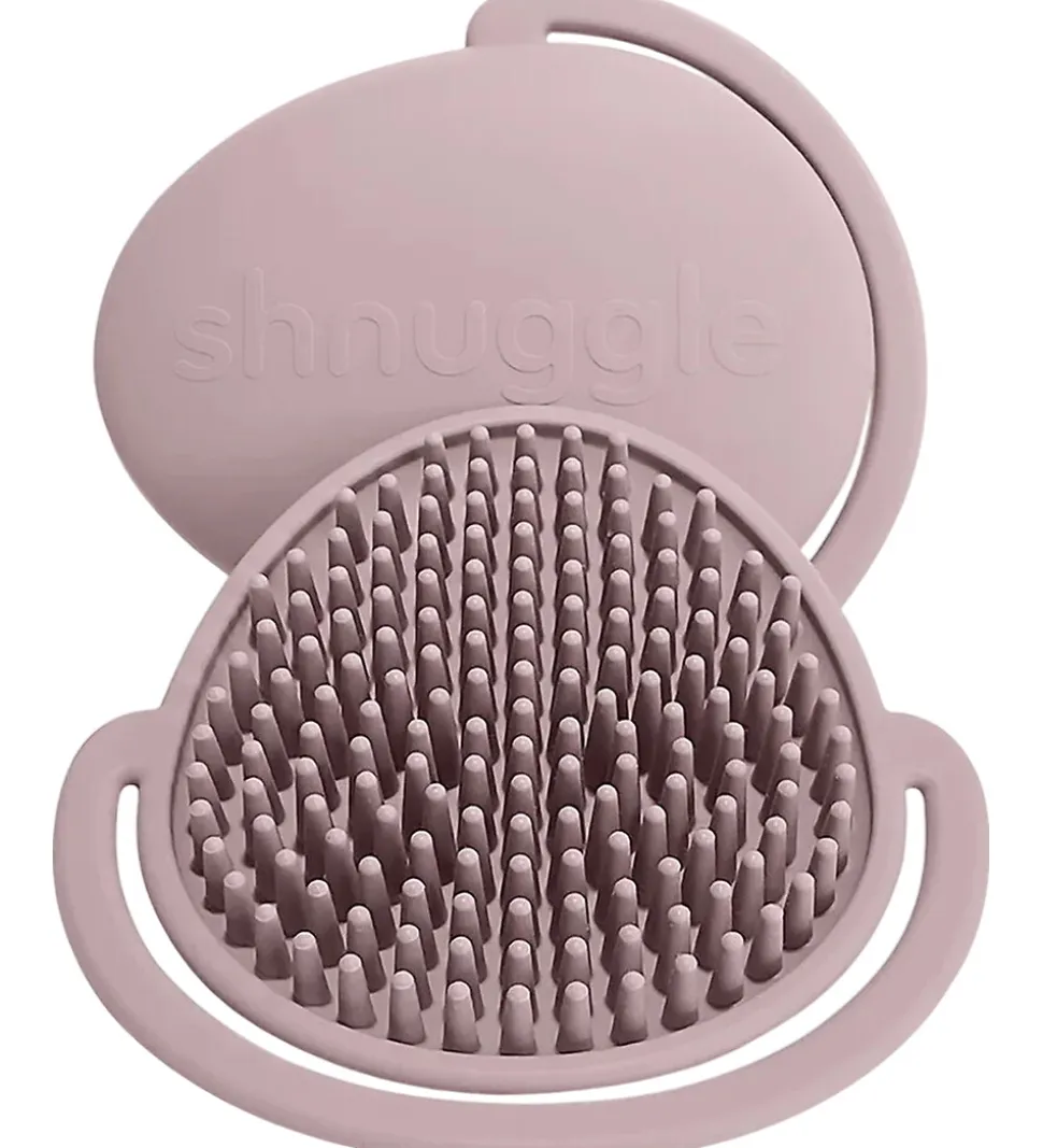 Shnuggle badebørsten masserer blidt shampoo ind i håret på babyen, samtidig med at den er med til at fjerne arp i hovedbunden. Badebørsten er skånsom mod det lille barns hud, og den ligger behageligt og godt i hånden.