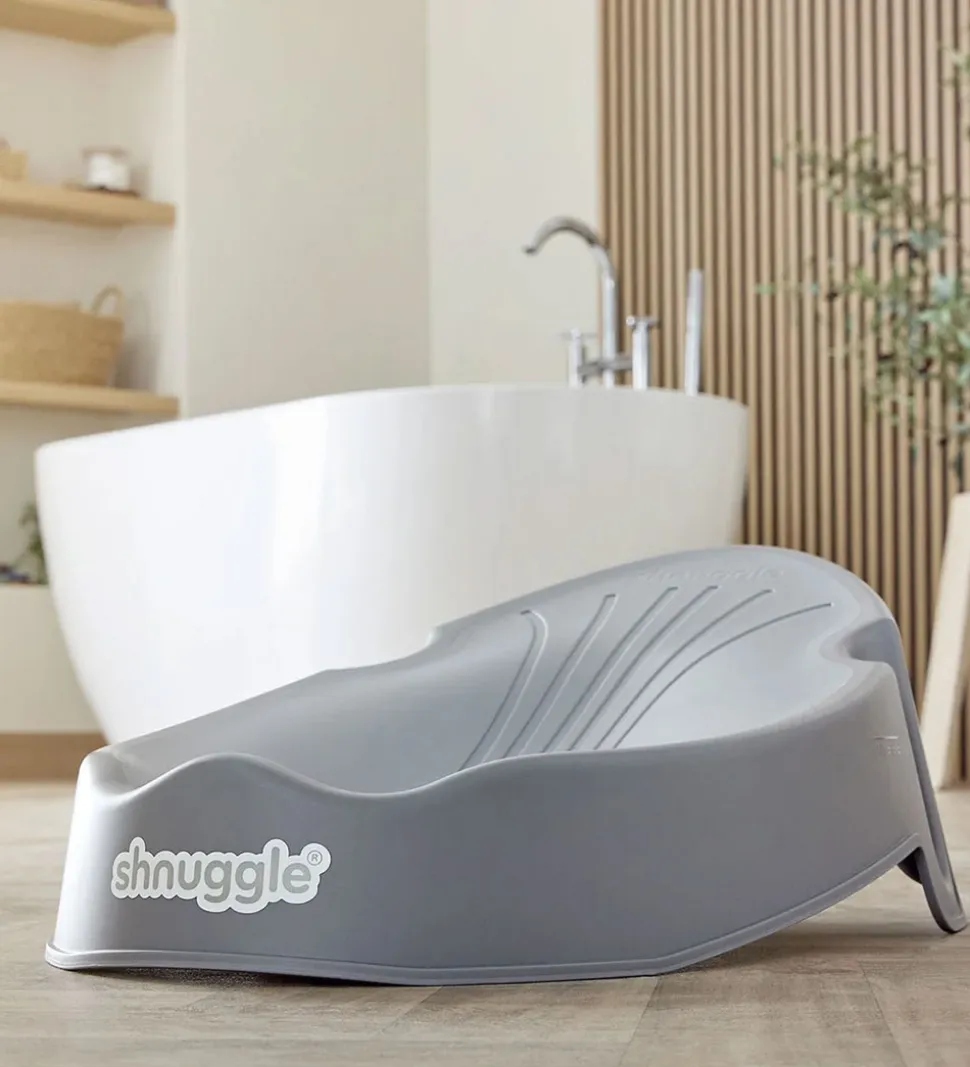 Smart Shnuggle badestøtte i lysegrå med et ergonomisk design.