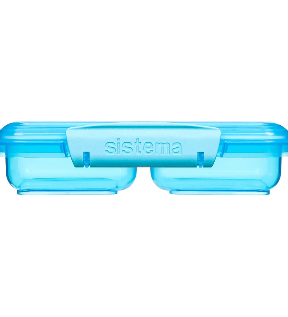 Sistema madkassen har et smart låg, som lukkes med specielle klips på begge langsider. Indvendigt har madkassen 2 lige store rum, der er helt separate i kraft af designet. Madkassen kan derfor uden problemer adskille frugt, snacks el.lign. fra hinanden.