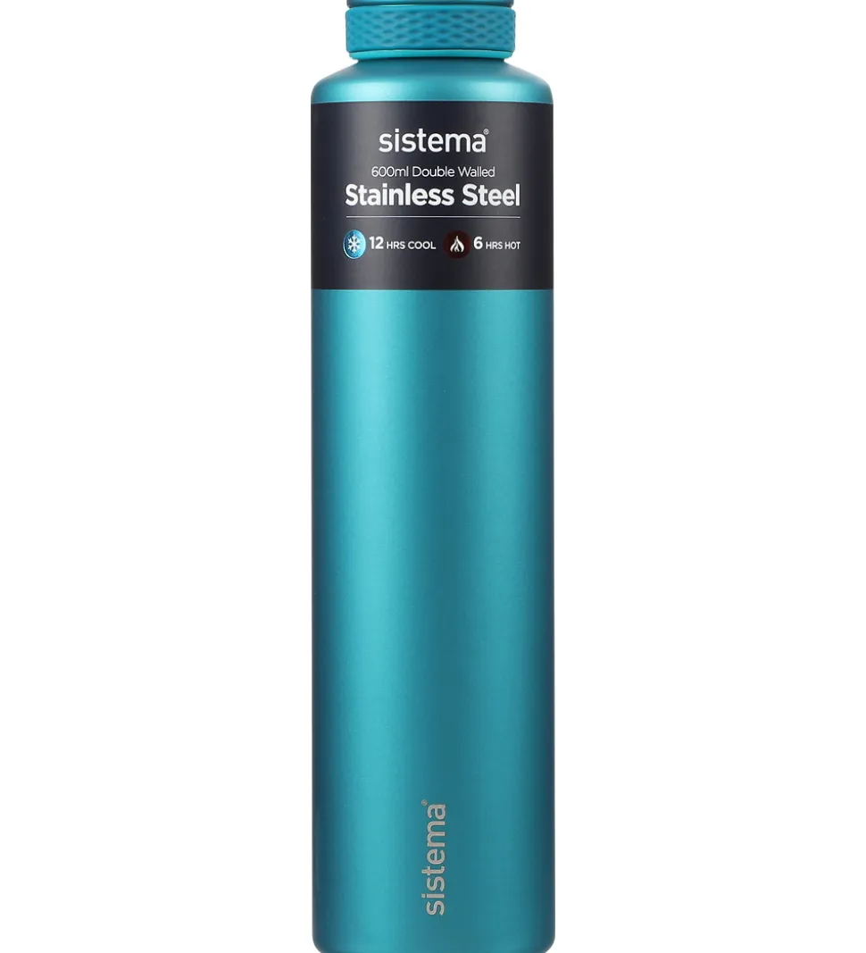 Sistema termoflasken har en dobbeltvægget konstruktion, som gør den i stand til at holde væsker kolde i 12 timer og varme i 6 timer. Derudover har den et praktisk, lækagesikker skruelåg med silikonebelægningning langs siden.
