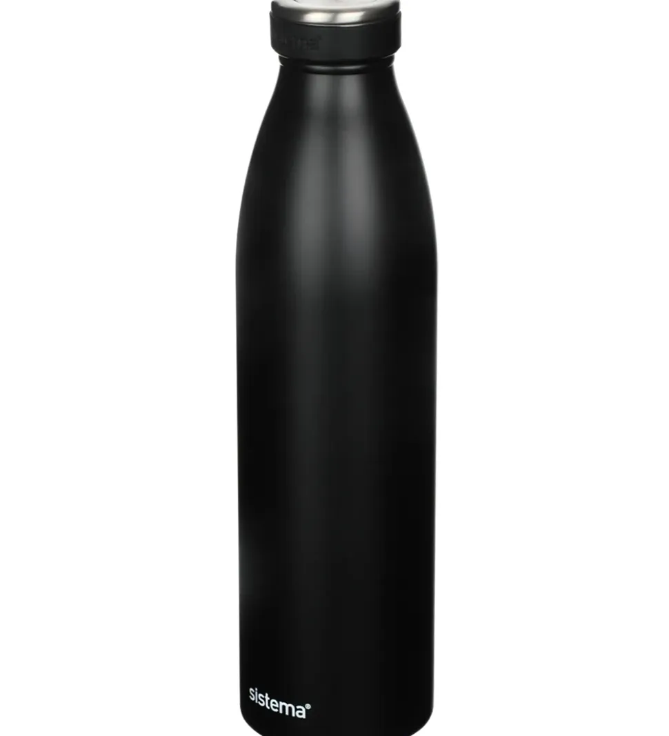 Lækker Sistema termoflaske i sort, rustfrit stål, som kan indeholde op til 750 ml.