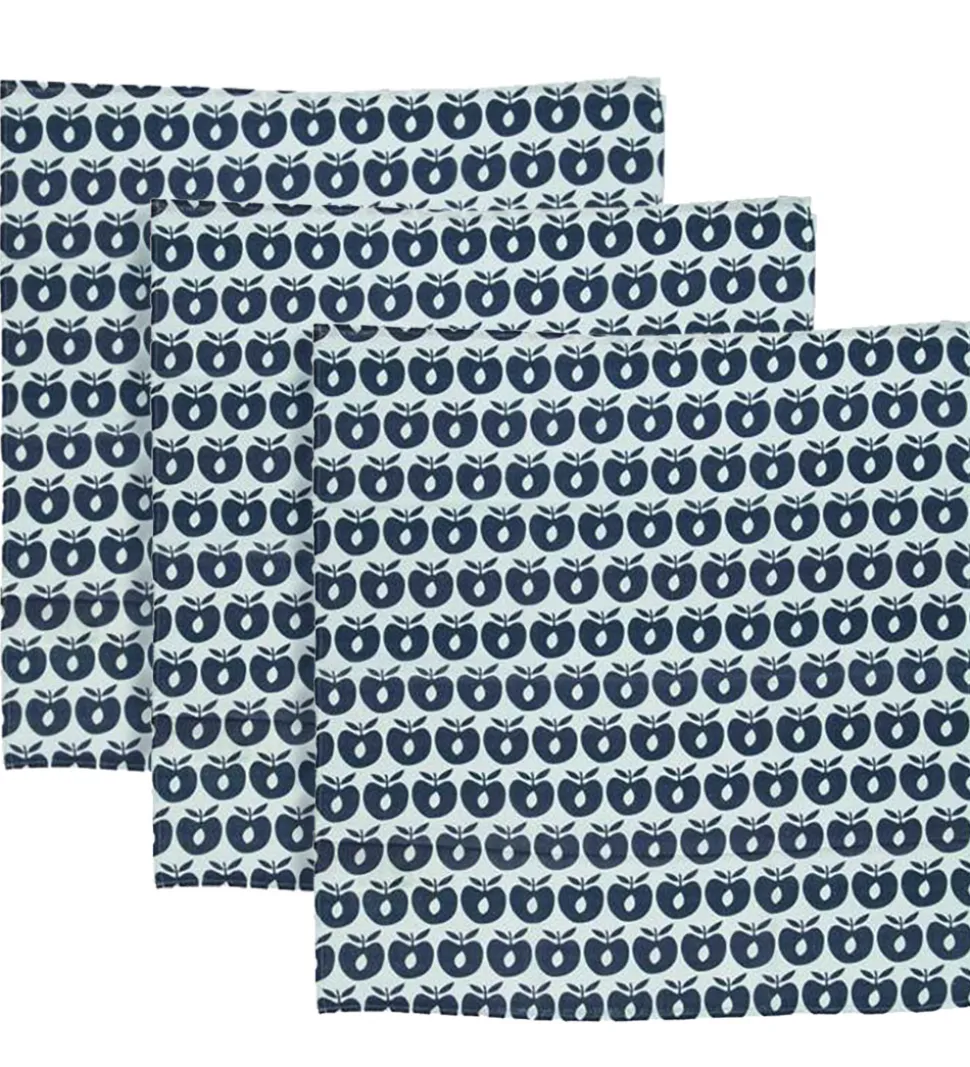 Flotte Småfolk stobleer solgt i en 3-pak i hvid med et alloverprint af de velkendte Småfolk æbler i mørkeblå.