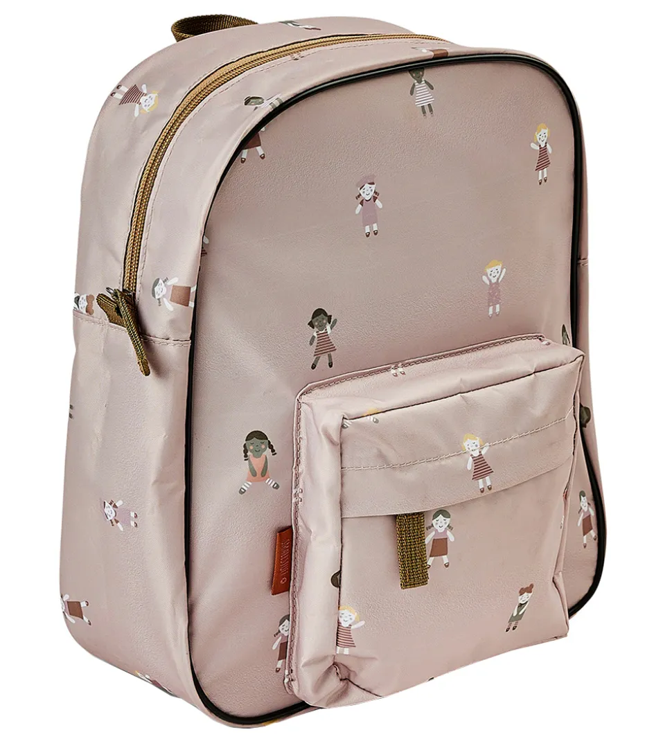 Flot Smallstuff børnehavetaske i en støvet rosa nuance med et sødt print af små dukker.