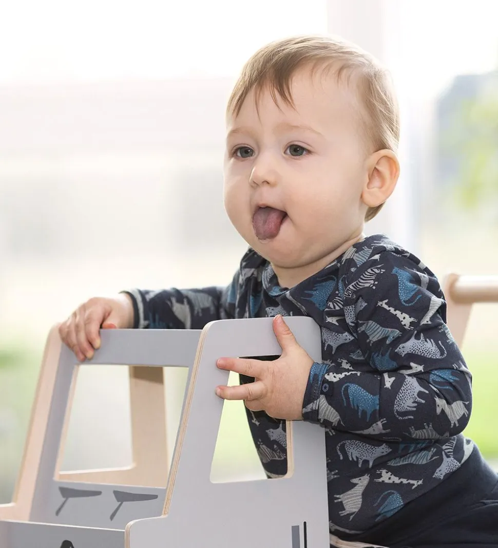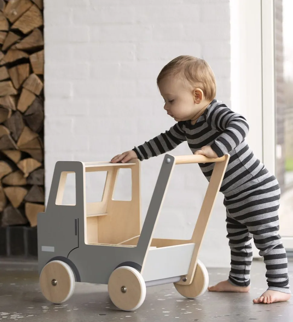 Smallstuff gåbilen har et robust håndtag, som passer godt til små hænder. I siden på lastbilen sidder der en benzin-pistol, som sidder fast med en snor, så barnet kan lege, at lastbilen får benzin på. Vognen har godt med opbevaringsplads, så barnet kan gå rundt med sit yndlingslegetøj i gåvognen.