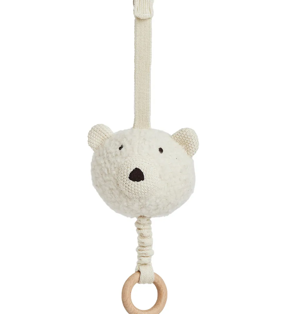Sød Smallstuff musikuro af et bjørnehoved i hvid bouclé med ører og ansigt.