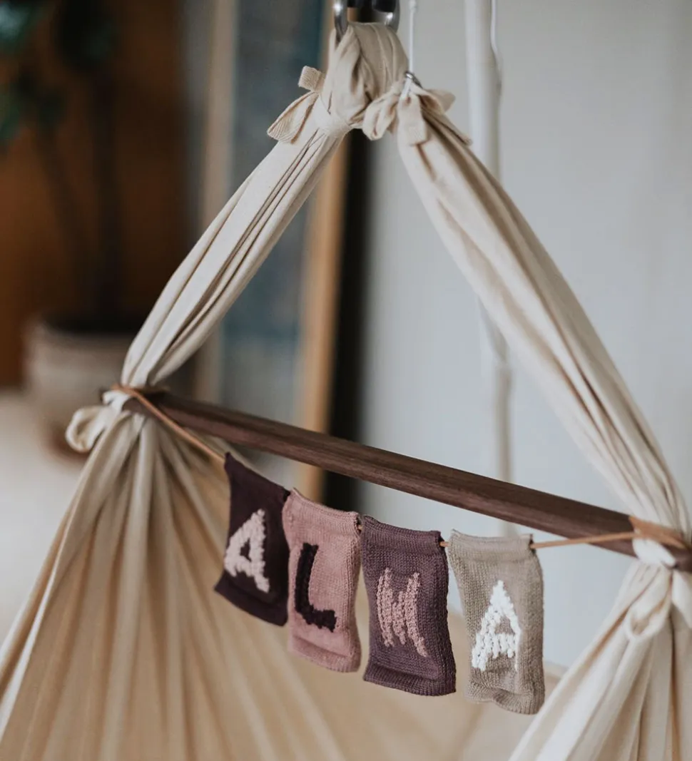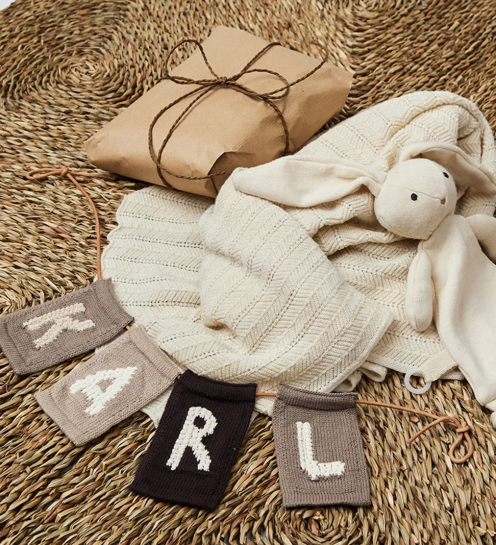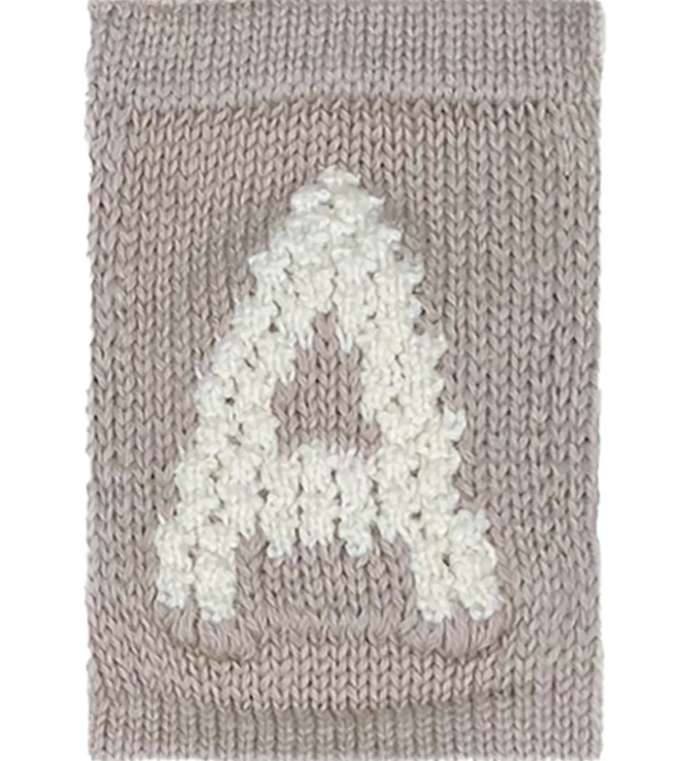 Fin Smallstuff bogstav i lysebrun med en strikket struktur og bogstavet “A” i hvid. Med Smallstuff bogstavet kan du kombinere bogstaver og motiver og danne en sød flagranke med barnets navn.