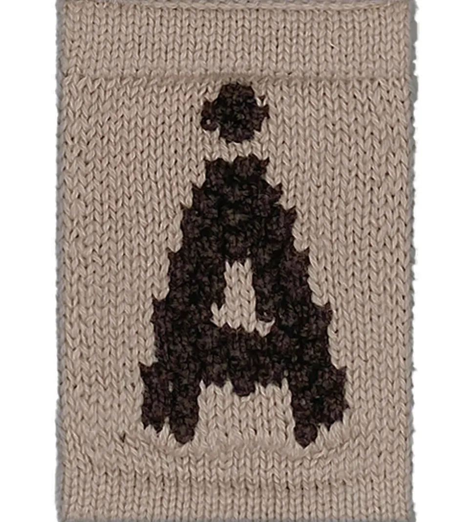 Fin Smallstuff bogstav i lysebrun med en strikket struktur og bogstavet “Å” i mørkebrun. Med Smallstuff bogstavet kan du kombinere bogstaver og motiver og danne en sød flagranke med barnets navn.