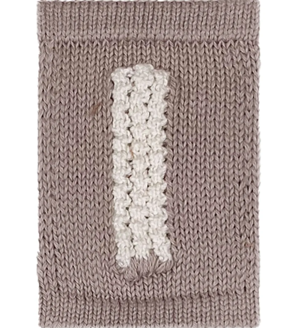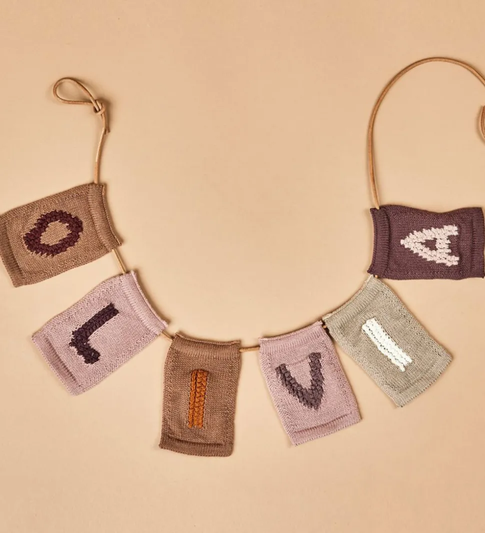 Fin Smallstuff bogstav i lysebrun med en strikket struktur og bogstavet “I” i hvid. Med Smallstuff bogstavet kan du kombinere bogstaver og motiver og danne en sød flagranke med barnets navn.