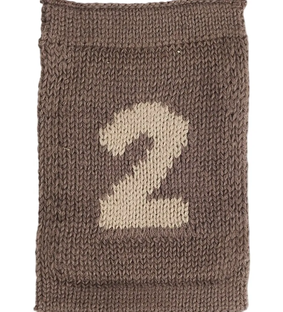 Flot Smallstuff flag i brun med en strikket struktur og tallet “2” i lysebrun. Med Smallstuff strikkede flag kan du kombinere tal, bogstaver og motiver og danne en sød flagranke.