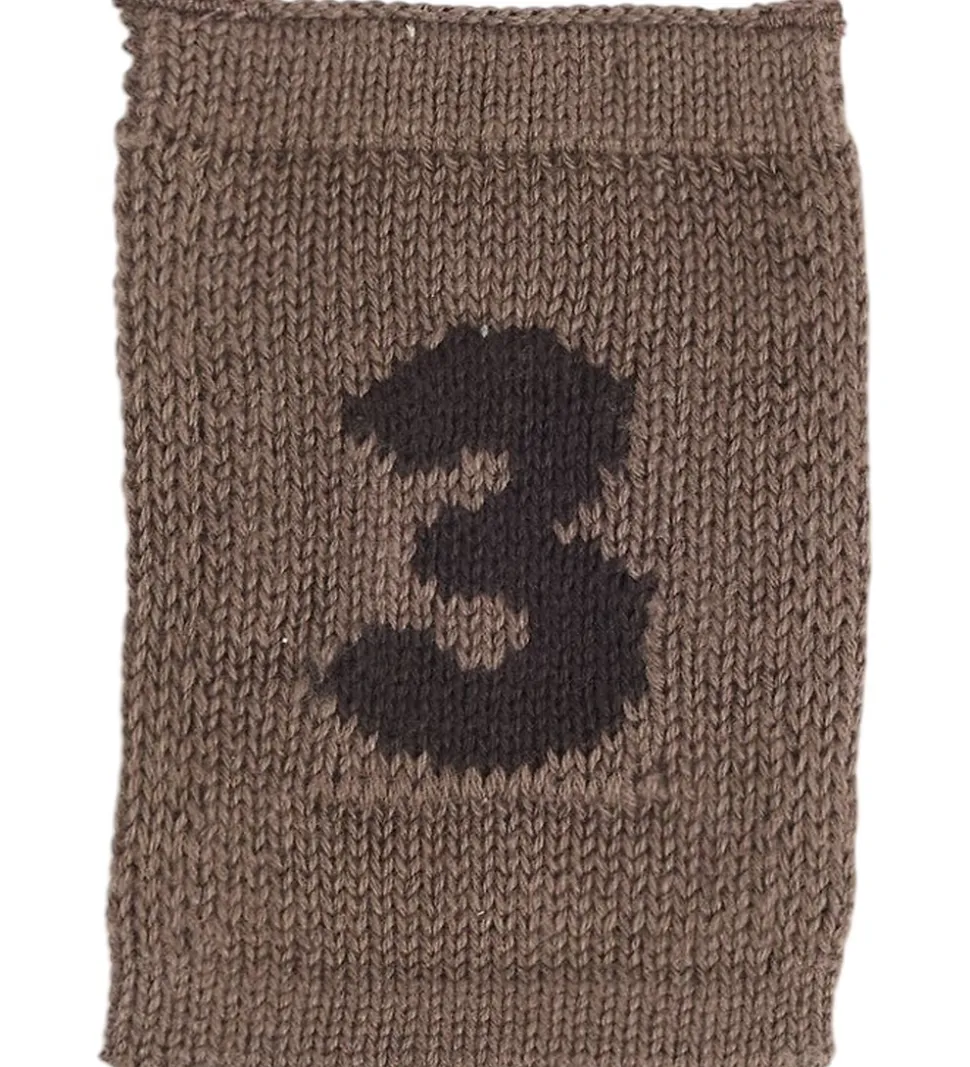 Flot Smallstuff flag i brun med en strikket struktur og tallet “3” i mørkebrun. Med Smallstuff strikkede flag kan du kombinere tal, bogstaver og motiver og danne en sød flagranke.