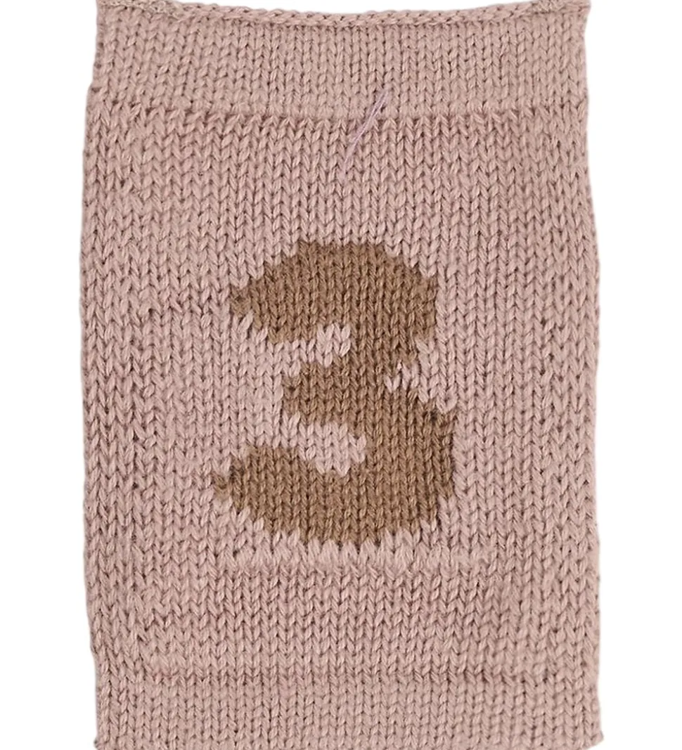Flot Smallstuff flag i mørk, støvet rosa med en strikket struktur og tallet “3” i brun. Med Smallstuff strikkede flag kan du kombinere tal, bogstaver og motiver og danne en sød flagranke.
